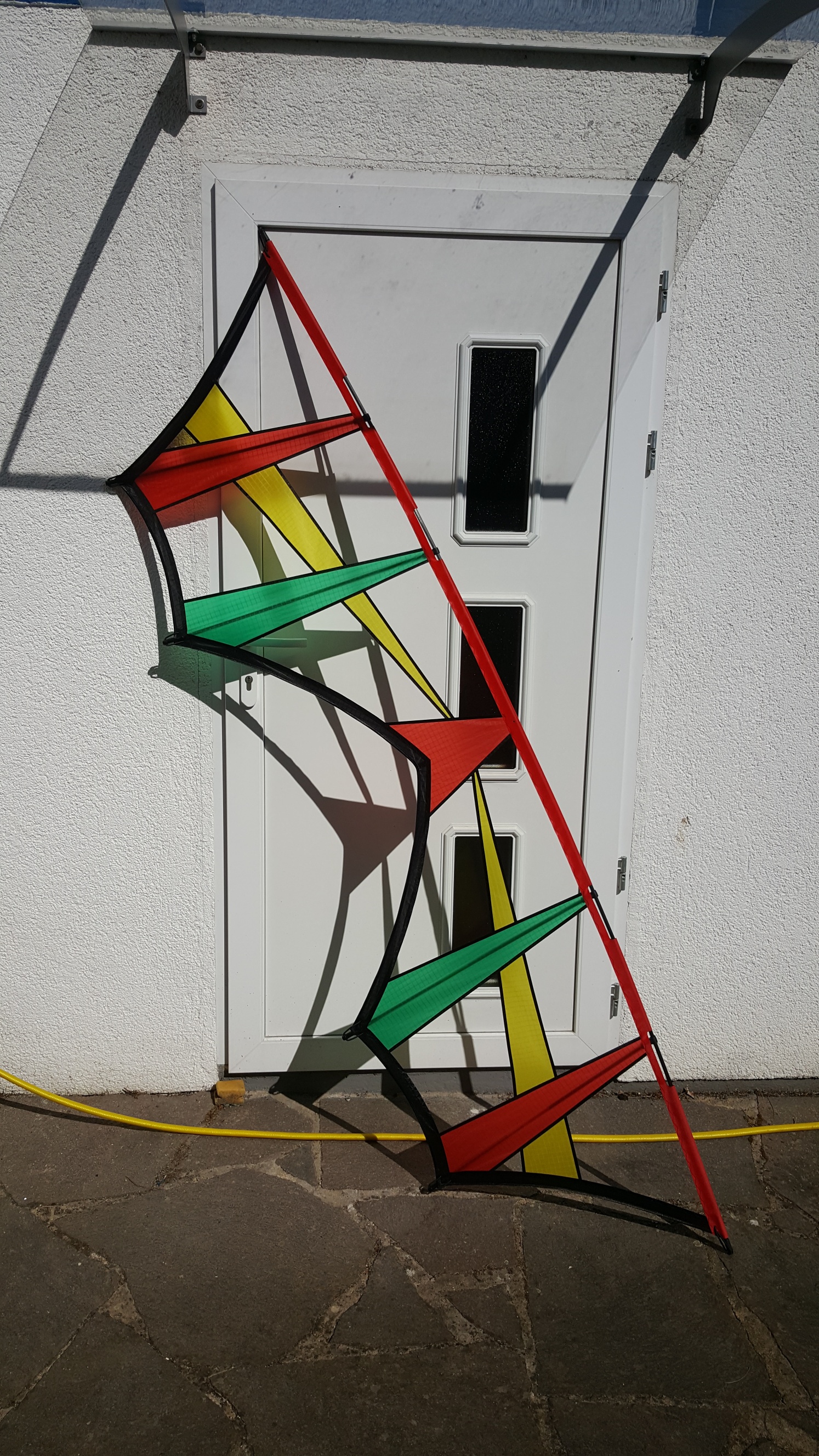 Die letzten Tage war zu viel Wind, aber heute nahm er ab und ich habe mal meine Drachentasche umgepackt und den Fulcrum mit an den Strand genommen. Bei 14-16 km/h am Boden gemessen , habe ich ihn dann aufgebaut , was auch besser ging als erwartet , sicher auch zum Teil dem schwachen Wind geschuldet , aber etwas Sand auf die Spitze zum Wind hin hilft bei solchen Konstruktionen.