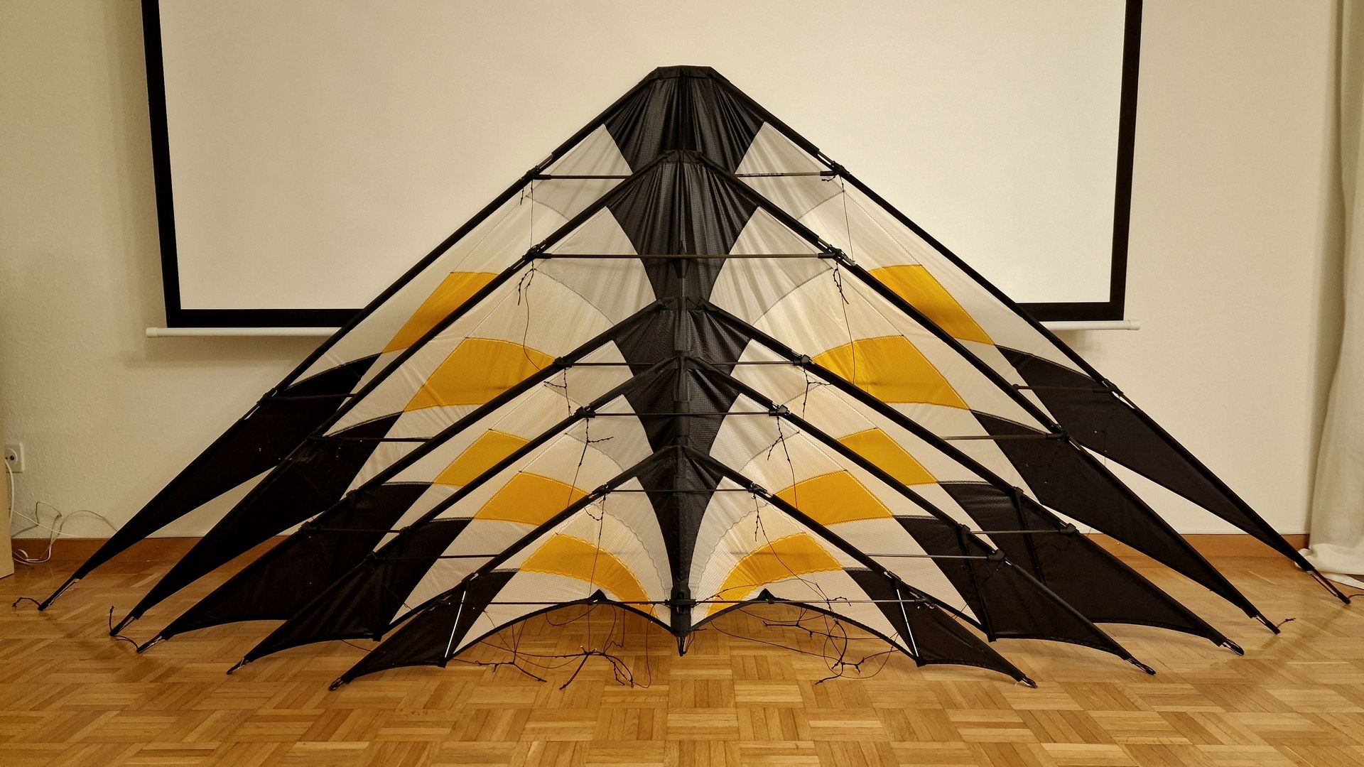 Der 2 Meter Saphire Speed war im nu aufgebaut. Wind, geschätzt eine satte 4 Bft. Die 35 Meter Leinen gelegt. Die Waage... Keine Ahnung, das Ding ist nach Bauchgefühl geknüpft/eingestellt und ich bereitete mich widermal emotional auf ein Knotenleiterrennen ein.