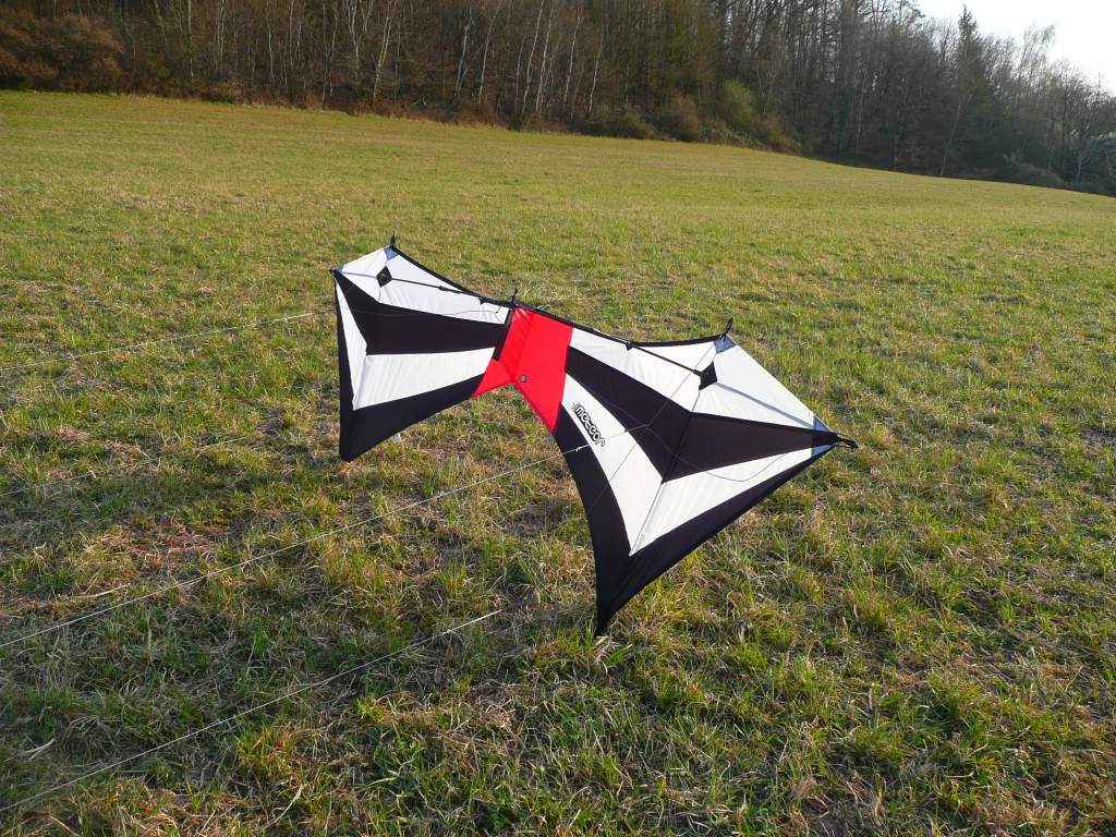Durch seine 2 m Spannweite ist er natürlich recht agil, aber mir kam er nie hibbelig vor, was zu einem Teil vielleicht auch damit zu tun hat, dass ich das Vierleiner-Stabfliegen mit der ersten Version des Dropkicks gelernt habe.
