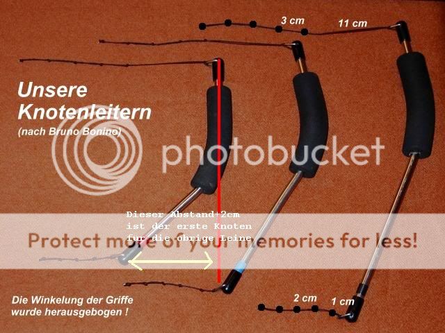 BREMSschnur : Alle 2 cm einen Knoten beginnend vom Handle weg.