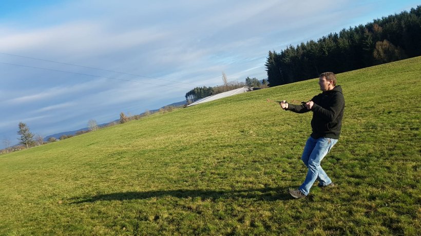 Er merkte sofort, dass die Mystik ein herrlicher Vogel ist, der einen nicht plötzlich über die Wiese zieht. Ich erklärte ihm noch, dass sie den Windfensterrand nicht mag und gerne die Strömung dort abreist und auch die etwas langen Lenkwege hatte er sehr schnell raus.
