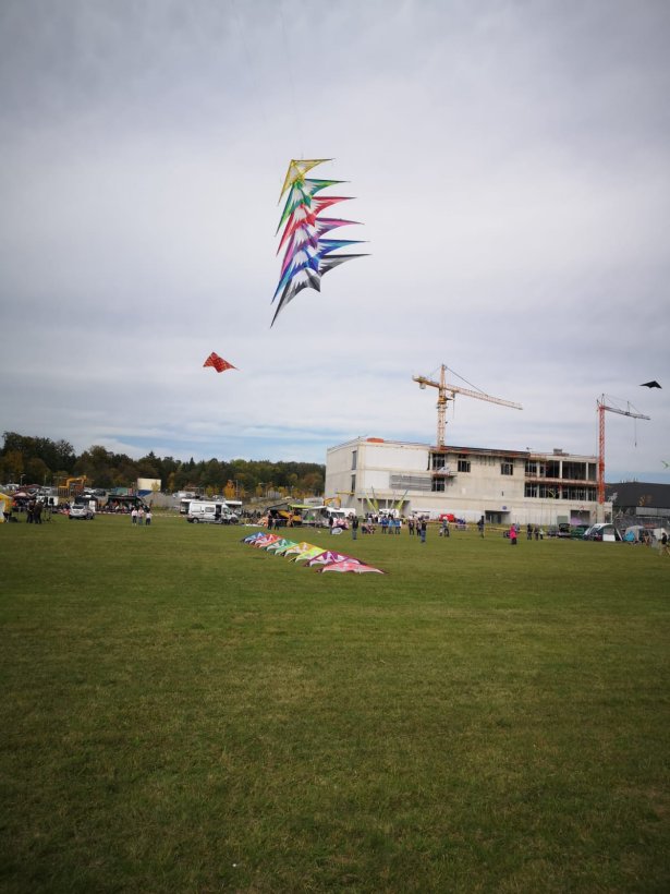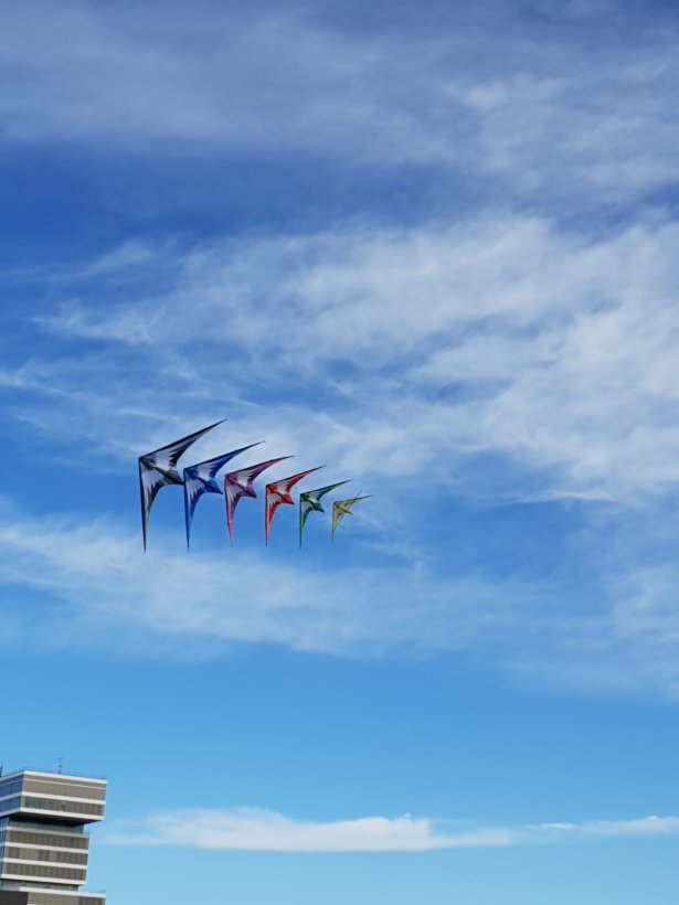 Aber dann kam doch noch Wind und am Himmel stand so ziemlich alles was die Drachentaschen bzw. ganze Anhänger hergaben.