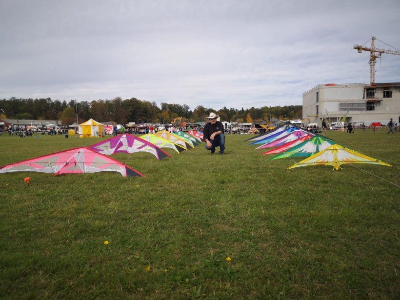 Was mir persönlich am besten gefallen hat. Ich durfte Samstags den Leuten meine beiden Wolsing Gespanne vorführen. Wenn auch nur kurz, da zu dem Zeitpunkt der Wind etwas Pause machte. Dafür erzählte Jürgen @Kiteman den Leuten etwas über Günters Drachenschaffen. Ich denke das hat er auch verdient.