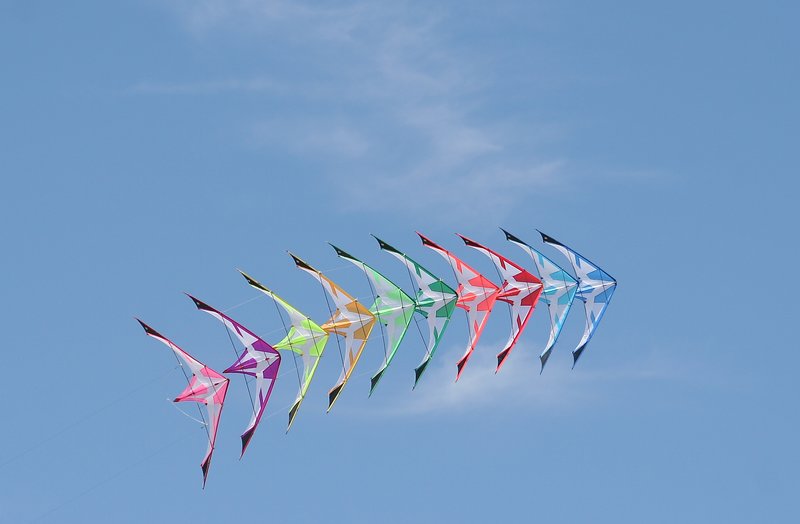 Es ist interessant, dass man auch mit so einem langen Gespann schöne - wie heisst es auf Neuschwäbisch? Groundpasses fliegen kann... eigentlich kann man zu jeder Zeit sicher sein, dass die Drachen genau das machen was man von ihnen erwartet.