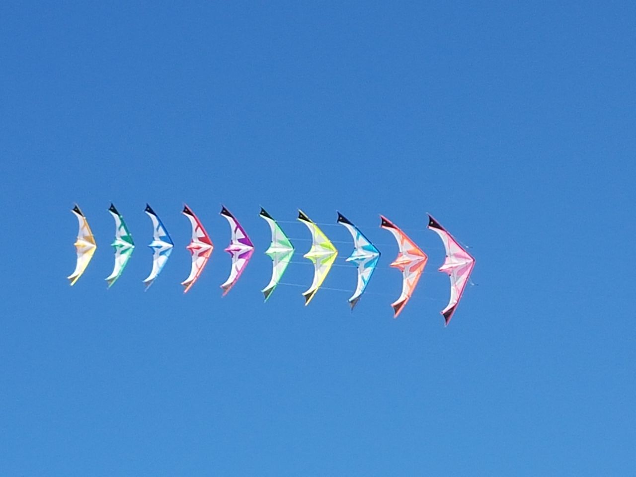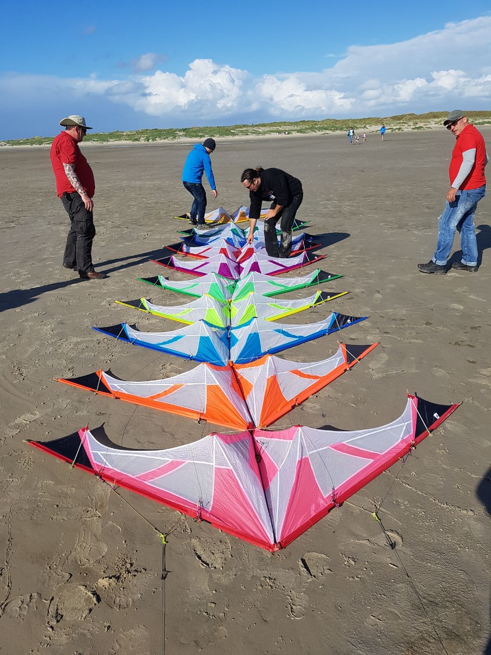 Also letzten Freitag beim 7. Wolsing Fliegen in St. Peter-Ording. Der Wind am Freitag war nicht gerade das, was man als leichte Briese so empfindet. So habe ich erstmal meinen Prototypen aufgebaut und den als Fullvented geflogen. Schnell gemerkt, dass das nix ist. ich spürte kaum Gegendruck, deshalb habe ich die Gazefelder verschlossen und geflogen. War schon besser. Sodenn entschied ich mich das Gespann zunächst als 3er Stack aufzubauen... ein Start und direkt wieder runter und die zwei Restlichen angehängt. Beim Flug dann festgestellt, heute geht mehr...