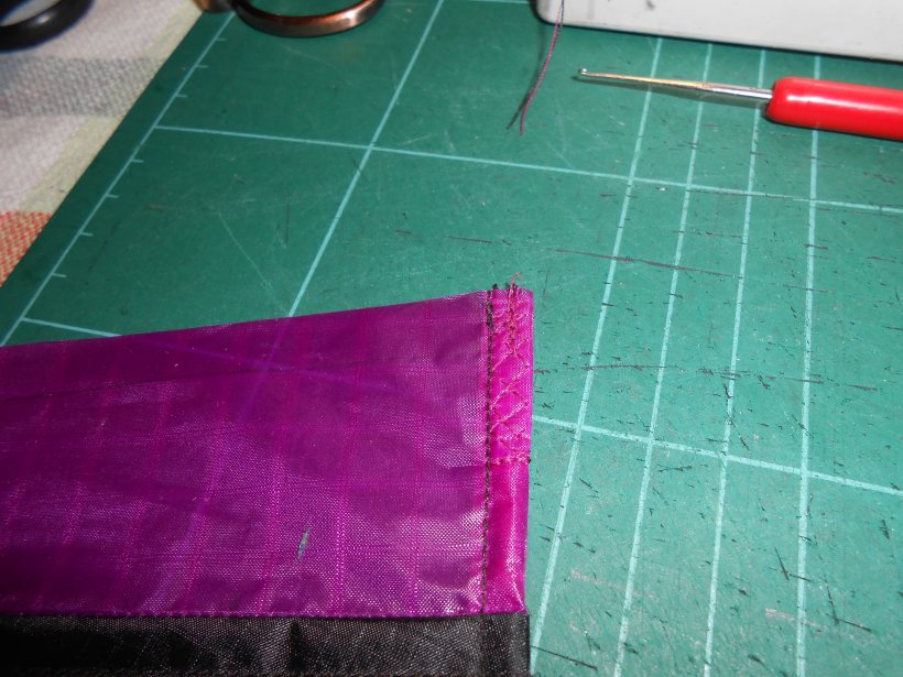 Vernähtes Ende des Aufhängebandes und das ohne Kunstgriffe dass man eine blöde Schnur im Innern des Tunnels auch sauber vernäht bekommt.