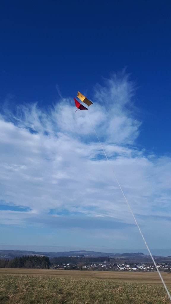 Und so schaut derzeit mein Brogden aus. Ausgelegt in meinem Wohnzimmer. Die Abstände der Segel stimmen noch nicht, ich hatte wenig Platz. Und es sind sehr viele Nähfehler im Segel enthalten, da ich den Drachen so nach und nach beim Bauen konstruiere und so auch auf Gegebenheiten stoße, die ich einfach mal als gegen akzeptiere. Beispiel sind die 3cm Ränder, die an den Ecken den Saum innen bis zur Außenkante führen… kann man eleganter lösen, wenn man vorher drandenkt.