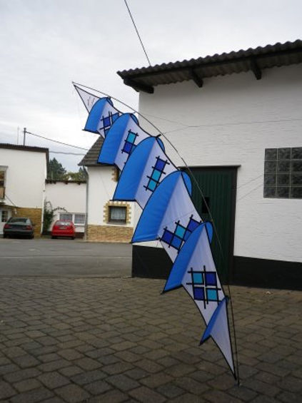 Ja, er ist etwas schwierig zu trimmen mit dem Gewicht. Aber wenn es passt und der Wind gleichmässig weht, dann ist es ein wunderbares Bild am Himmel.