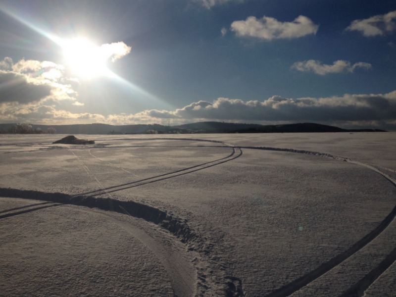 Pause (zum knipsen aber nur). Weiße Leinen auf Schnee sind doof. (Der Kite ist schwarz mit bissel blau drin, wie man hier schön erkennt)
