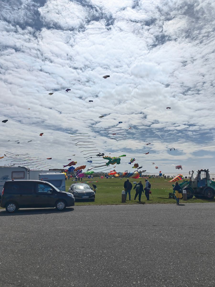 Ich bin nachher in Dornumersiel auf der Wiese, ist ja ein wenig Wind heute. Wird aber sicherlich 4/5 Uhr.