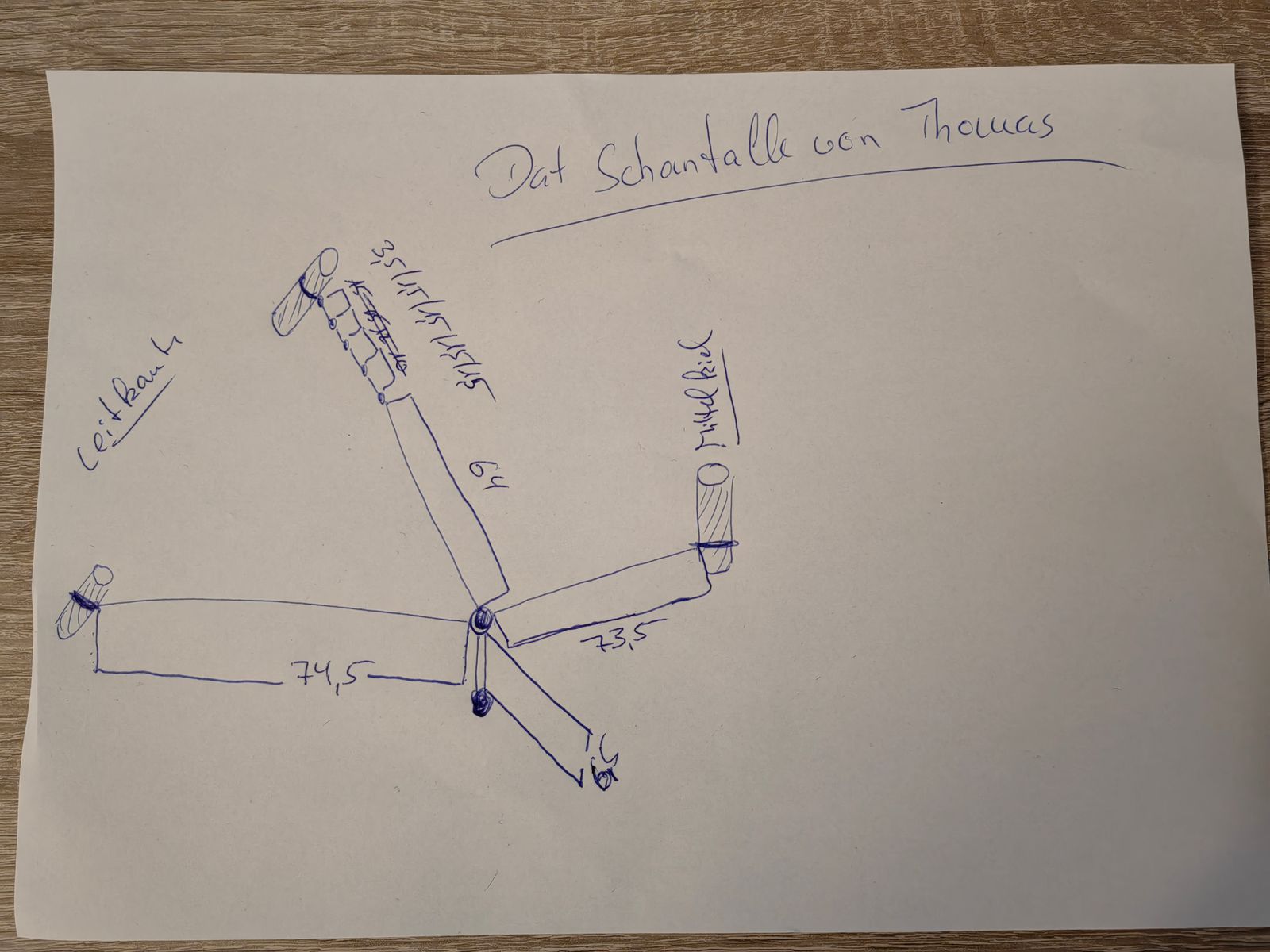 War heute wieder auf der Wiese. Bin noch mal alles durchgegangen und habe an der Waage ein vertauschtes Maß gefunden. Das hatte zu dem extremen quirligen Rechts abdrehen geführt. Berichtigt und dann konnte ich ihn etwas abfangen. Ich glaube aber, dass ich die Waage Maße in Jörgs Anleitung falsch verstanden habe, kann mir vielleicht einer von euch sagen, wie sie wirklich sind, jeweils Stange - Knoten?