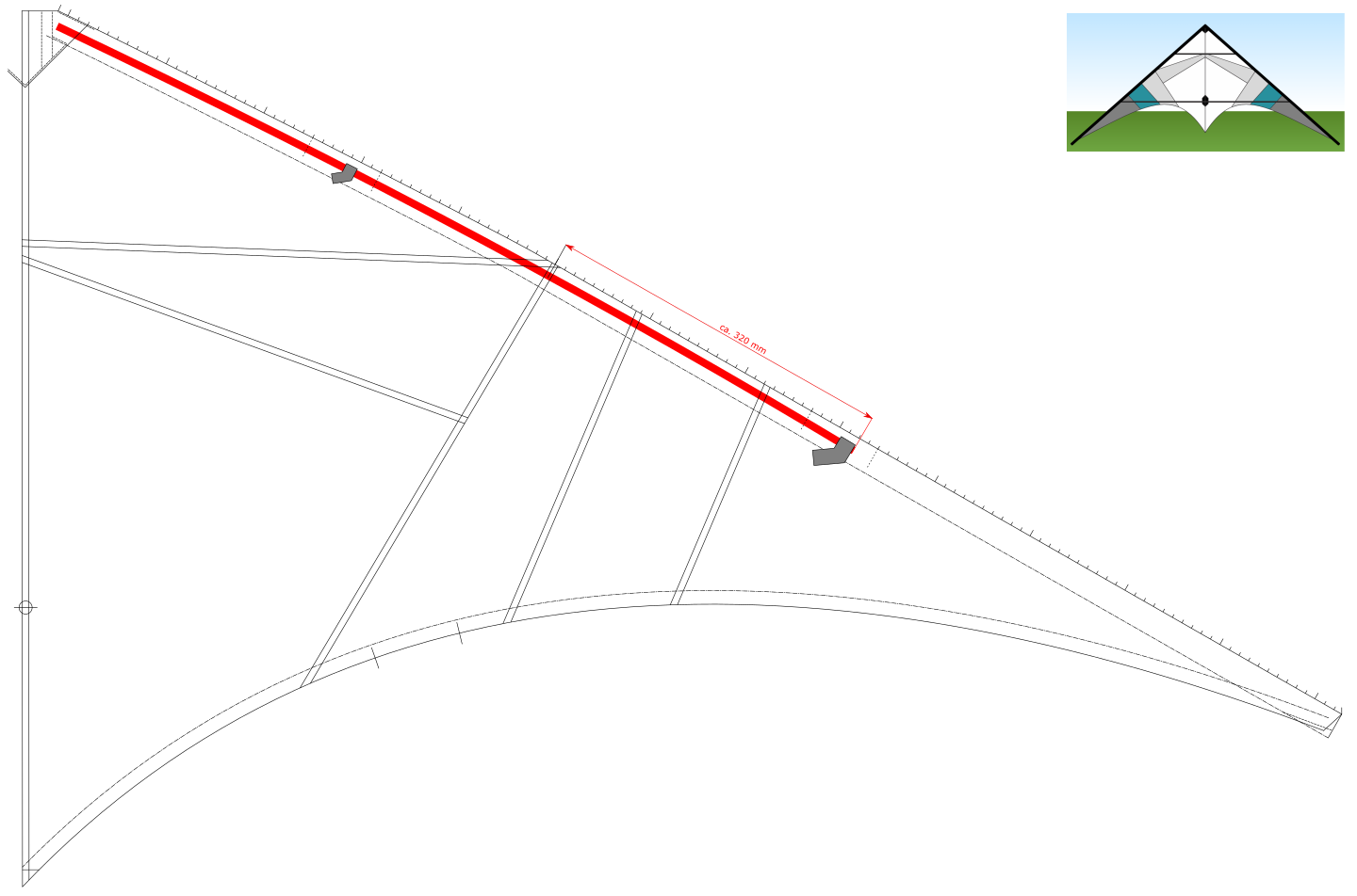 3) Ein Elliot Mirage mit ca. 2,80 Spannweite, Segel in einem einwandfreien Zustand. Der hat leider eine zerbrochene UQS. War wohl deshalb nie wieder in der Luft