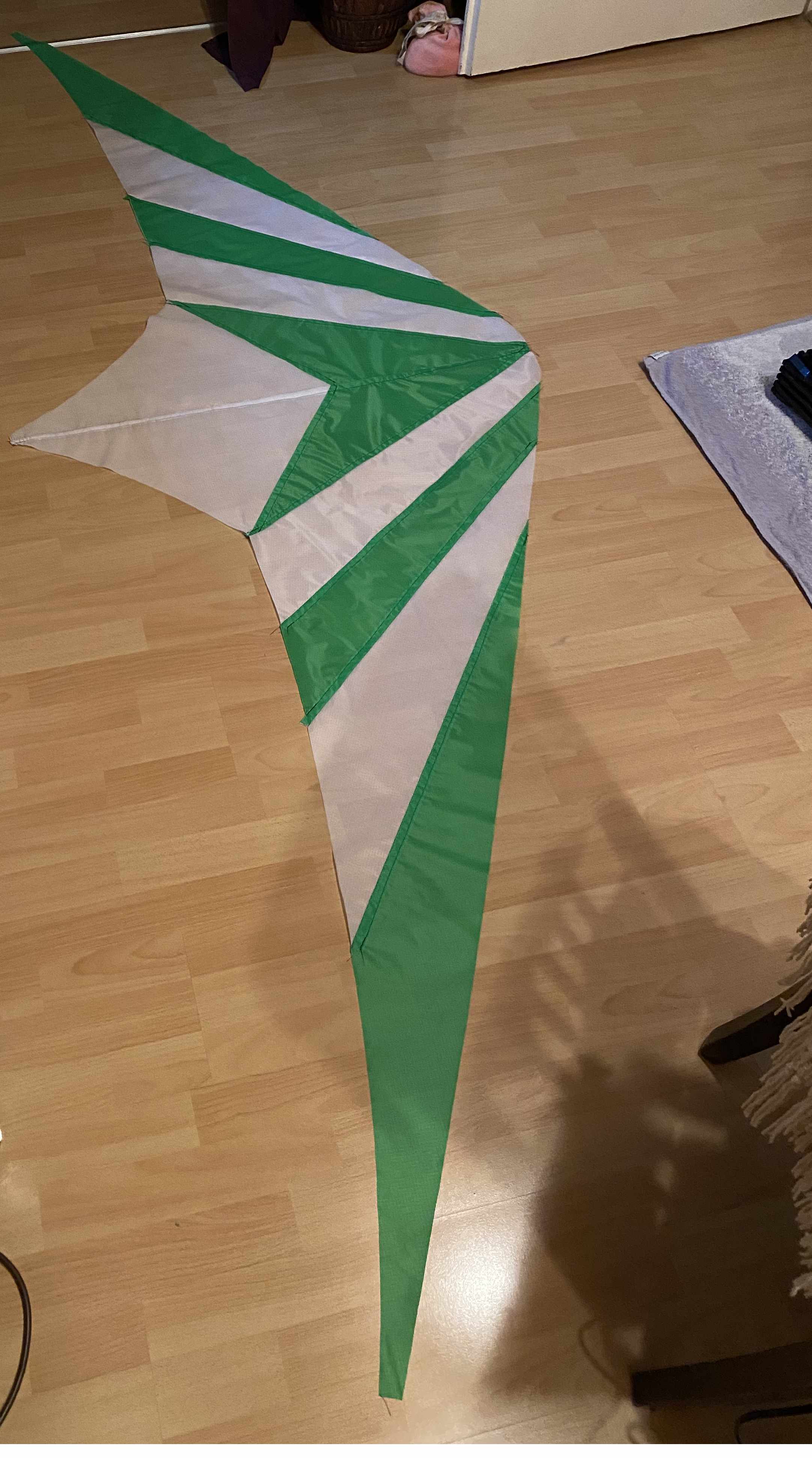 Ich hab nachdem ich das Dacron zurecht geschnitten habe eine Kaffeepause eingelegt und mir das Buch von Günter Wolsing noch mal vorgenommen. In dem Kapitel wo er beschreibt wie er die Verstärkung für die Standoffs aufnäht, erwähnt er das man beim vernähen aufpassen muss das man den Tunnel für das Spannseil nicht zu näht!
