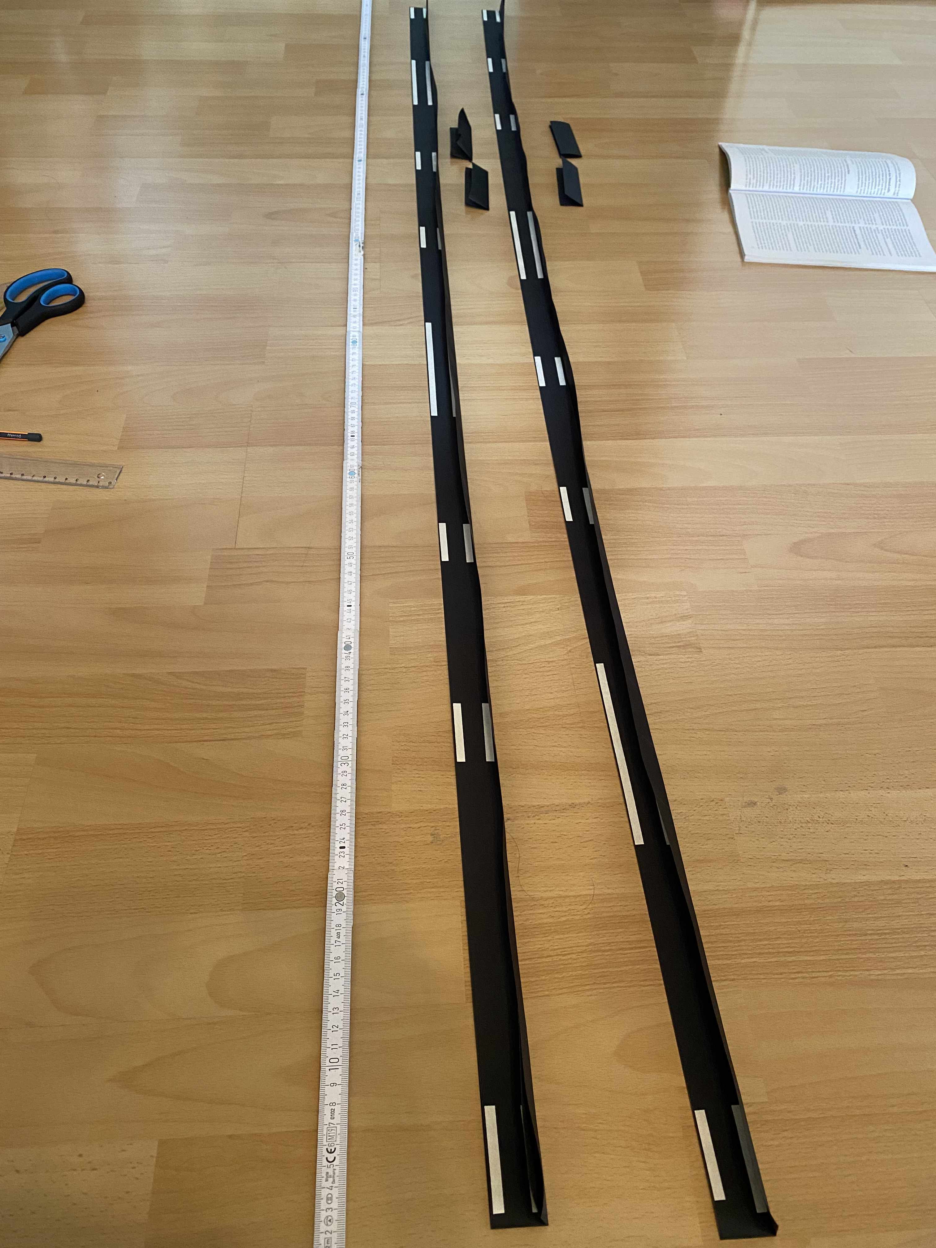 Heute hab ich damit angefangen das Dacron für die Stabtaschen auf Länge zu schneiden und zu falzen.....