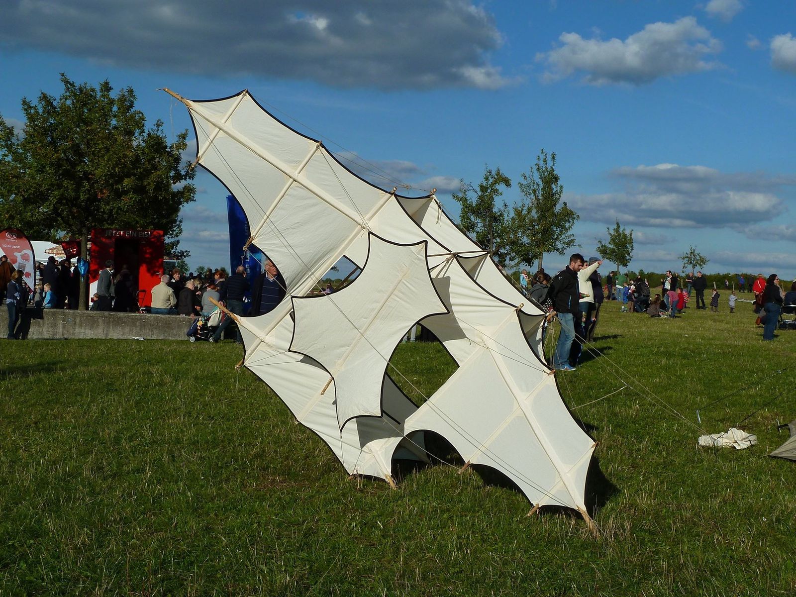 Es handelt sich um Eigenbauten, Rokakaku- Kampfdrachen, Roloplane in Baumwolle, Leichtwinddelta, und noch ein paar andere Dinge wie "Hüpfbälle" Knüpferschlange, (eine dreht falsch) Robben 1m und 3,5 m Länge und so weiter.