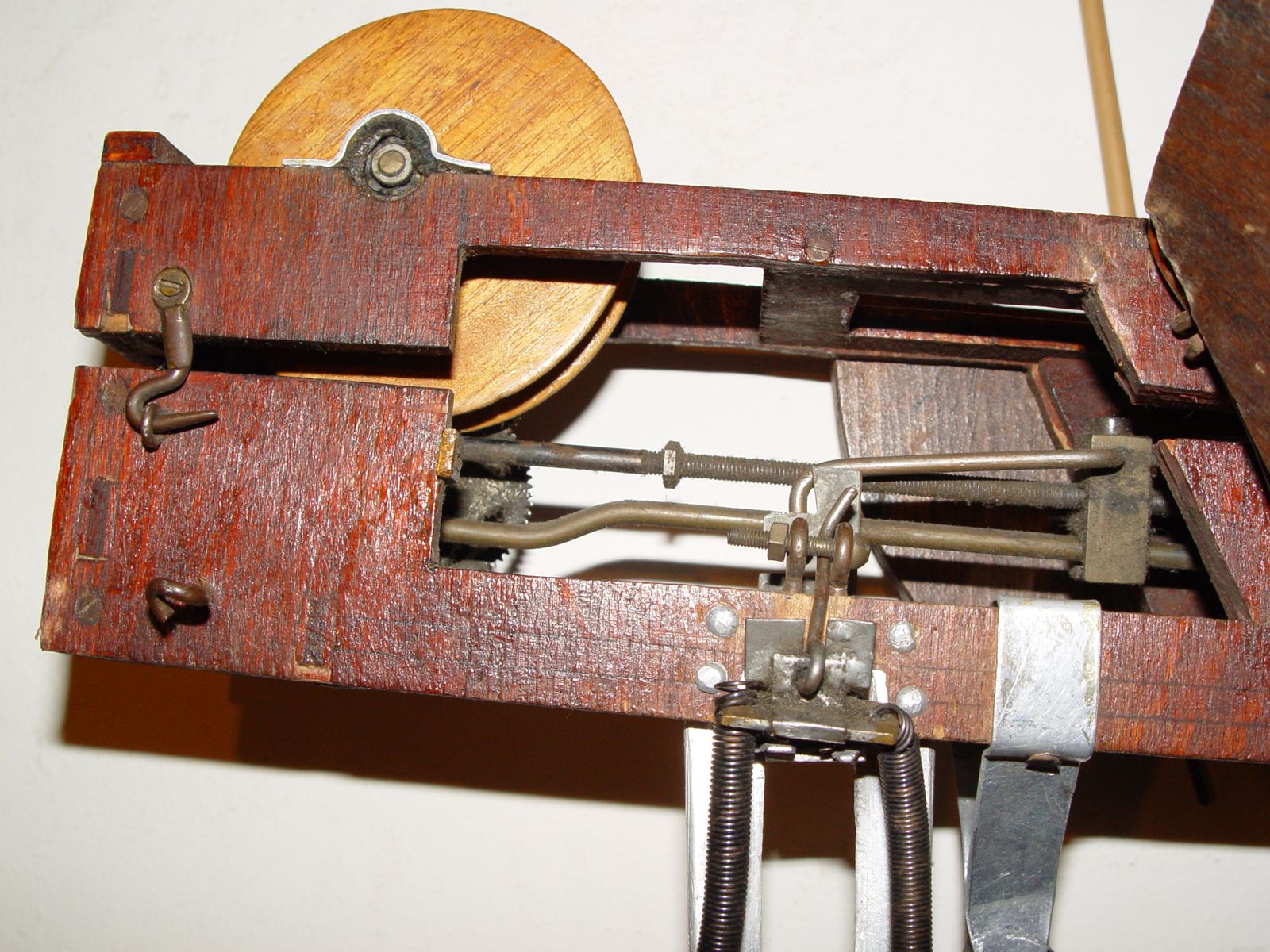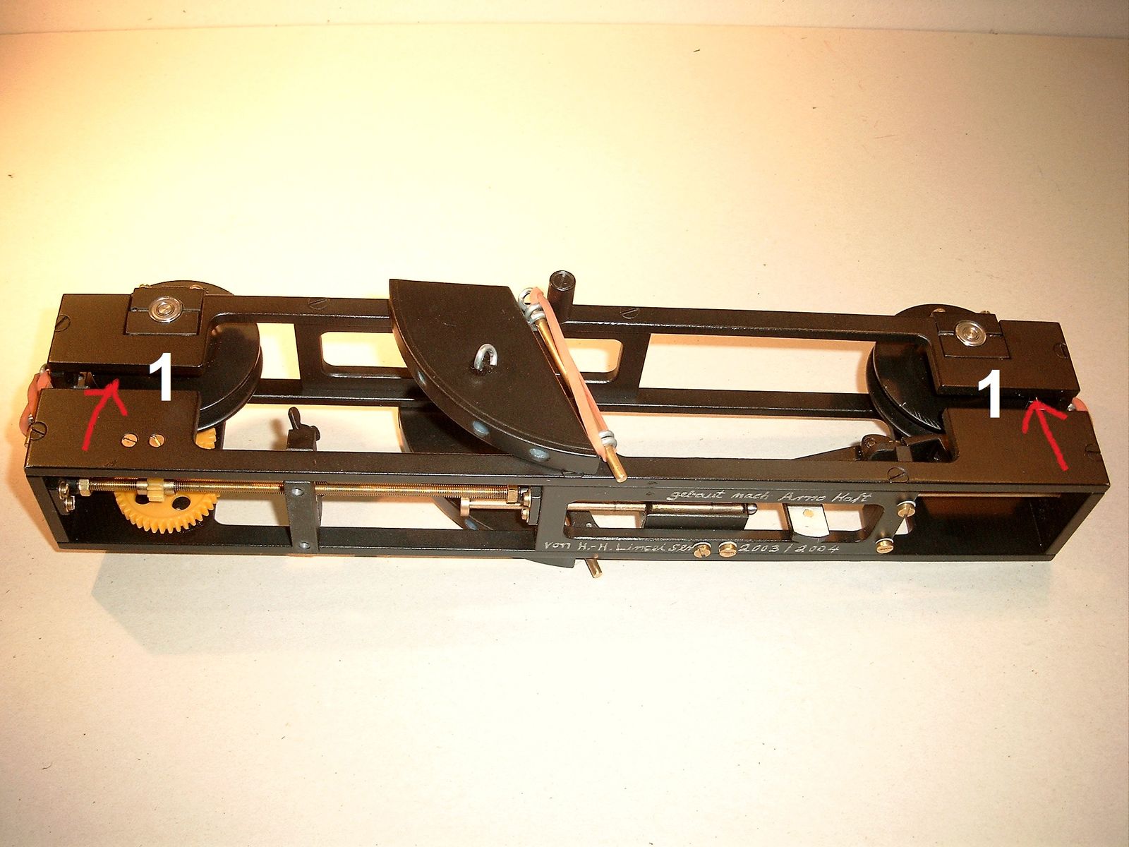 12). Durch die Rolle und durch das Getriebe, welches jetzt rückwärts läuft, stellt sich alles wieder dahin, wo es vorher stand.