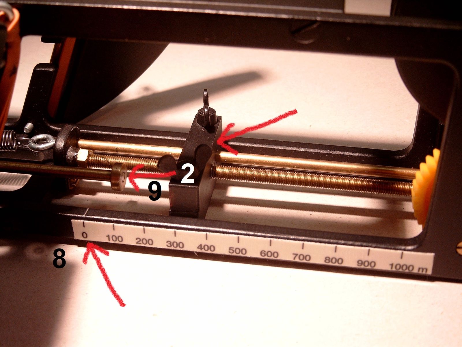 8). Nach dem berechneten Umfang der Rolle und der Getriebeübersetzung dreht sich die Gewindestange auf Null zu.