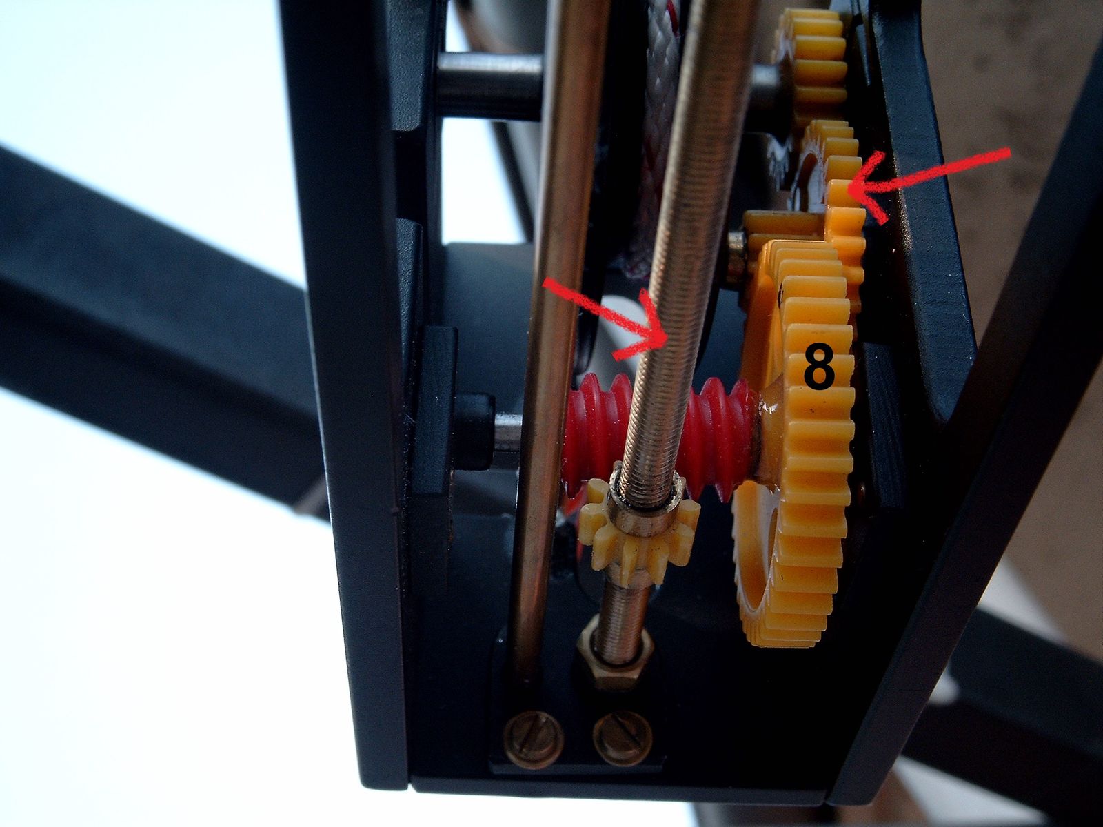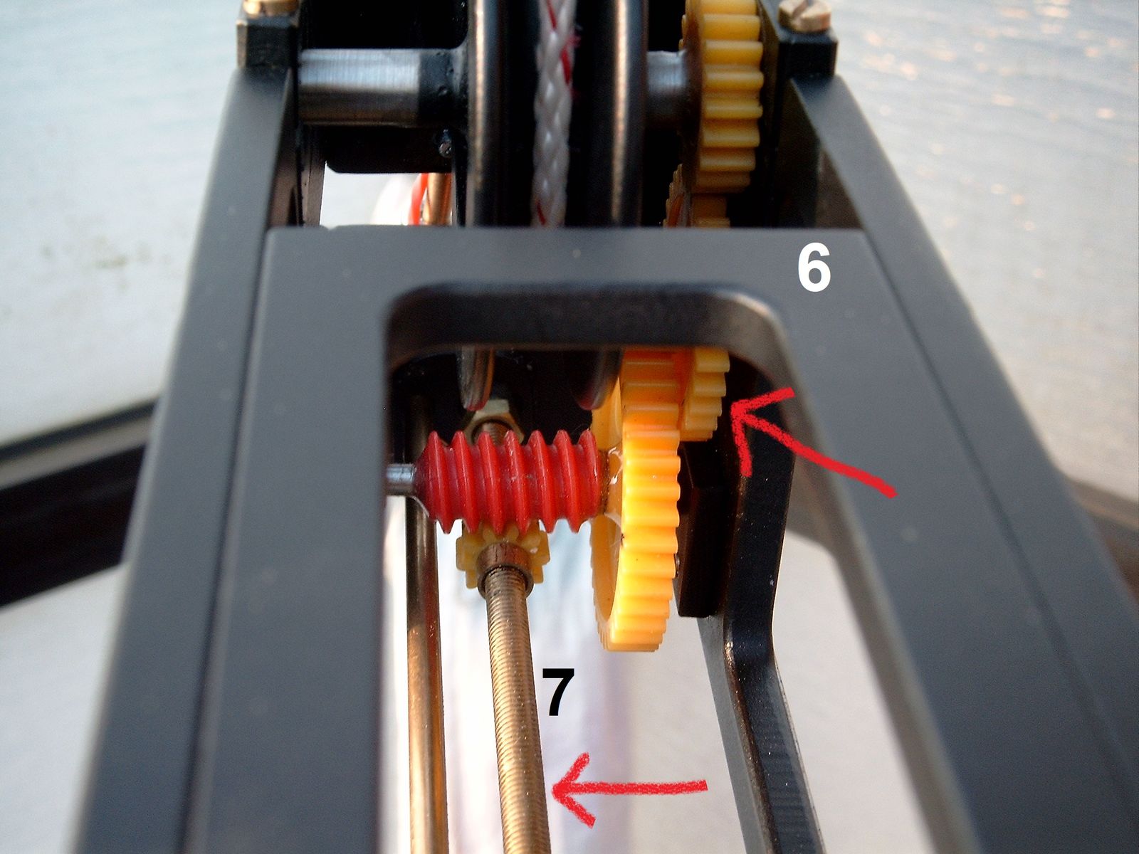 7). Dieses Getriebe betreibt die Gewindestange.