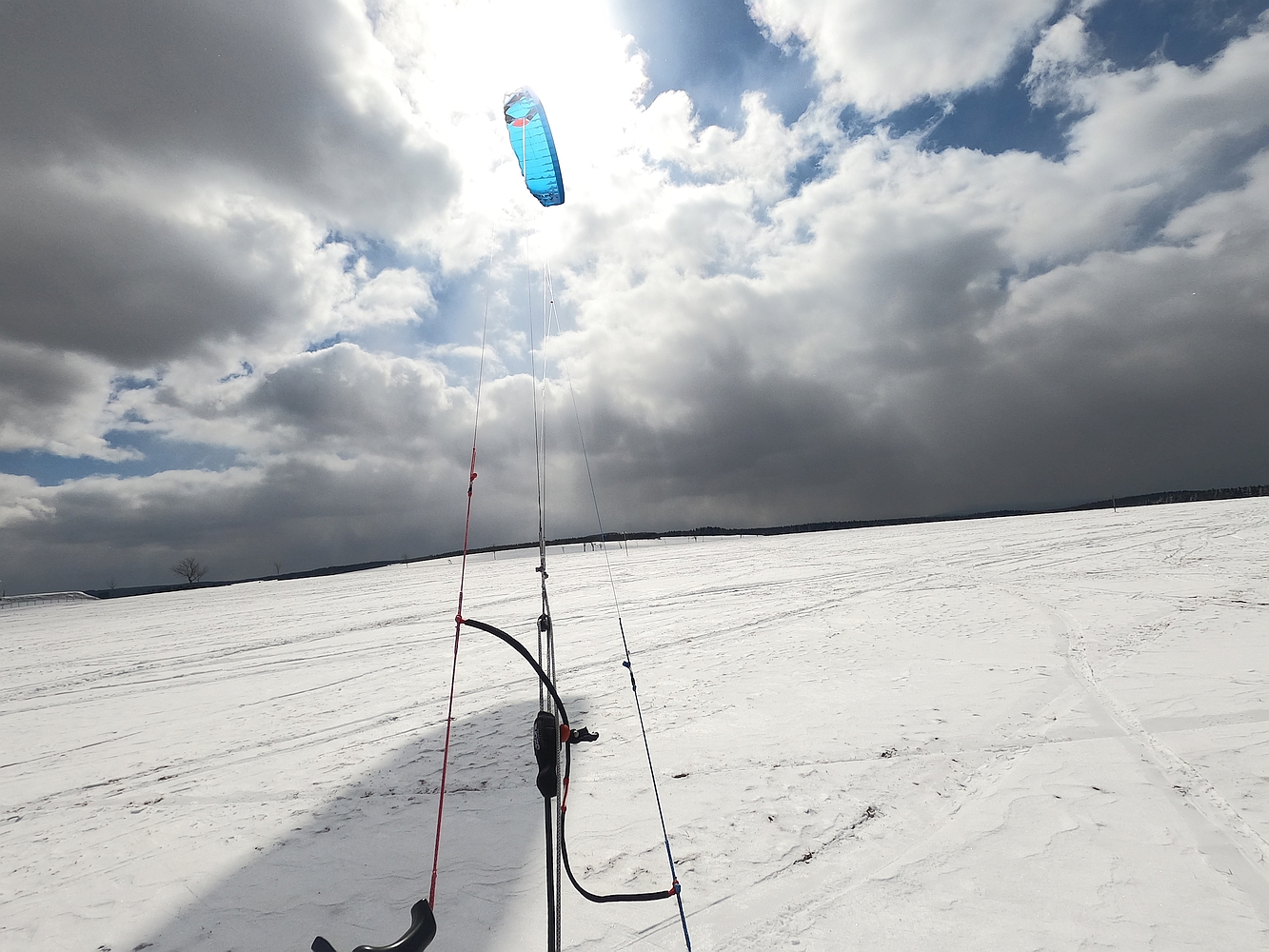 Leichtwind-Snowkiten mit der Ozone Explore V1 12m² vom Sonntag in Satzung
