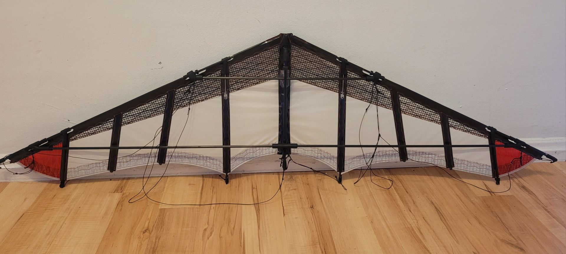 Der Kielstab hat, so wie es auf den Fotos aussieht, die obere Stabtasche durchstoßen. Die Tasche musst du leider neu machen. Bei den beiden Leitkanten (seitliche weiße Stäbe) vermute ich, dass sie durch einen Gewebeschlauch verbunden wurden (der selbe Schlauch, der auch die Leitkanten mit der Querspreize verbinden). So, wie es auch bei einem Speed Wing gemacht wird.