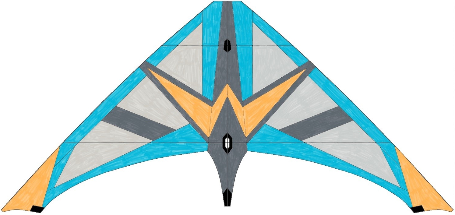 Ein Kestrel, designed by Joel Scholz, vertrieben über Sky Delight Kites.