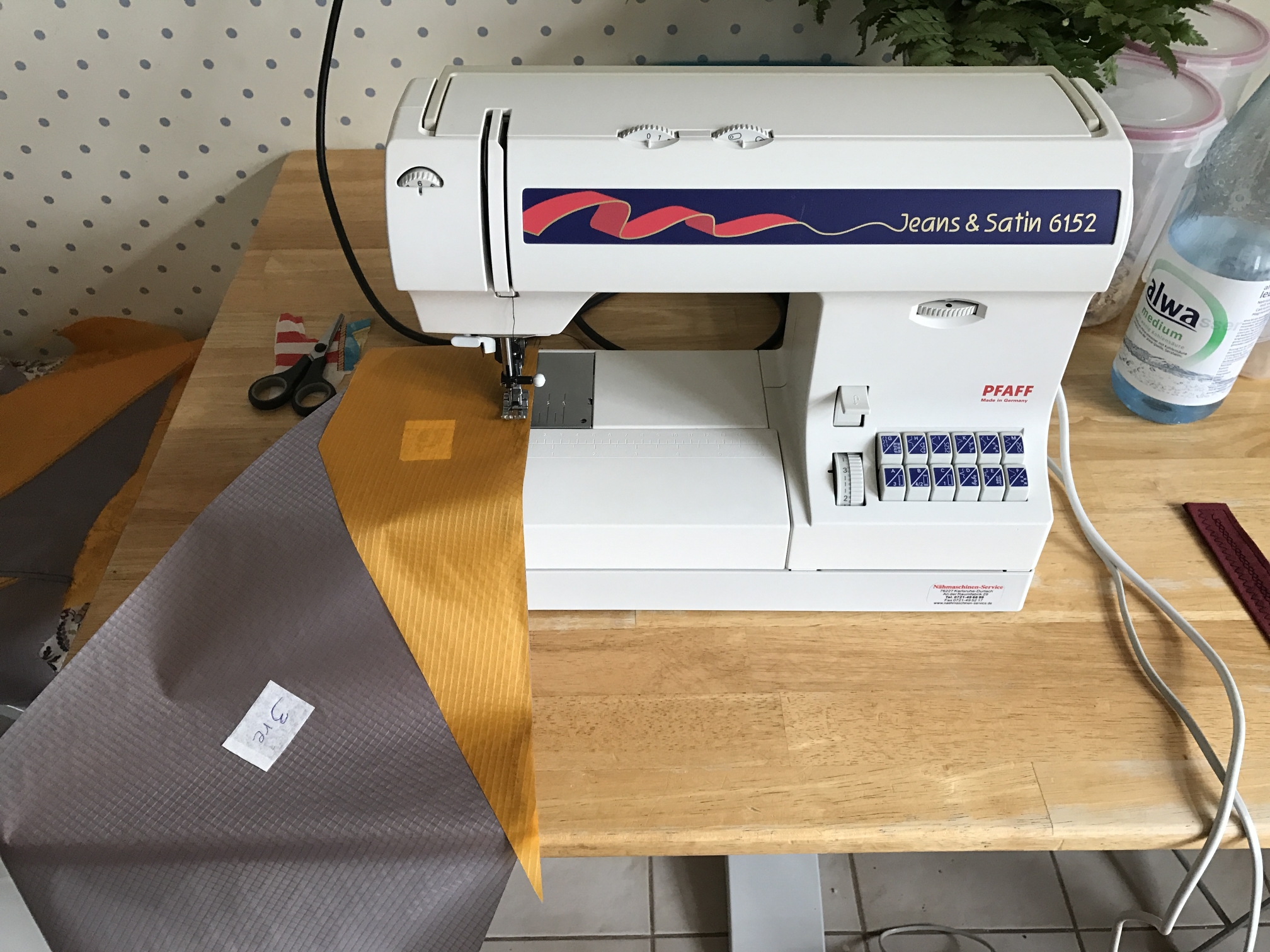 Ja, und nach einigem üben am Verschnitt um für mich zufriedenstellende Nähte zu erreichen ging es mit einigem Herzklopfen los. Ich hatte ja keinerlei Näherfahrung. Aber in diesem Stadium kann ja noch nicht viel passieren – man könnte ja verwerfen und neu beginnen (was ich glücklicherweise nie musste). ![]()
