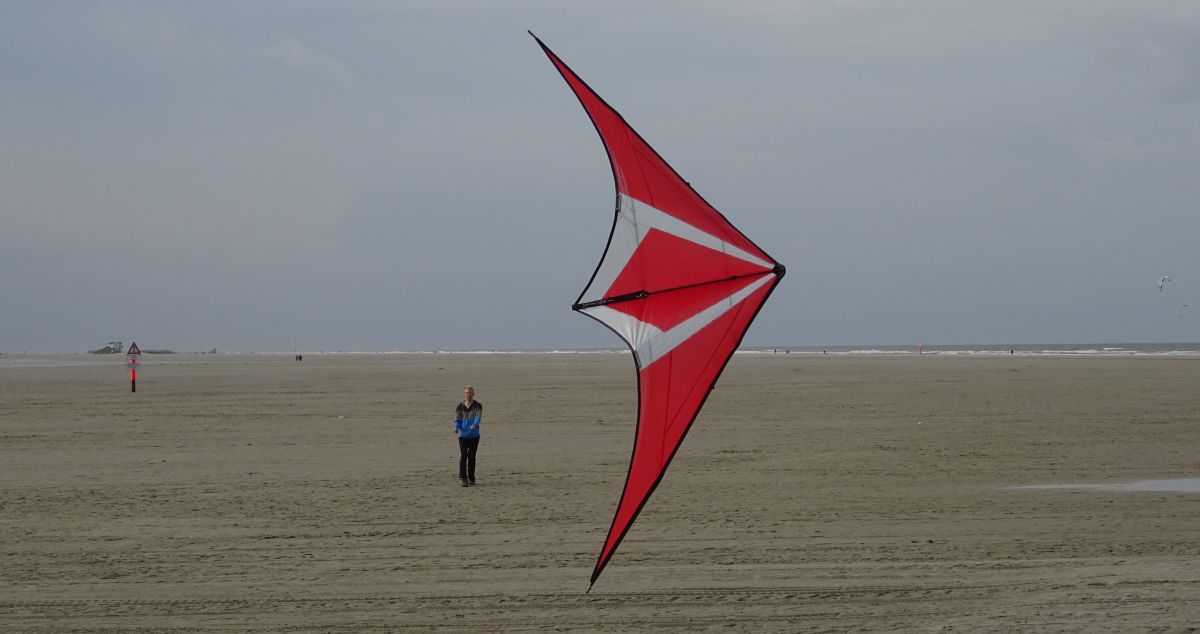 Der Wind waren ungefähr mittlere 3Bft. aber das Ding ließ sich nicht kontrolliert fliegen. Es hing nur irgendwie in der Luft rum und kam