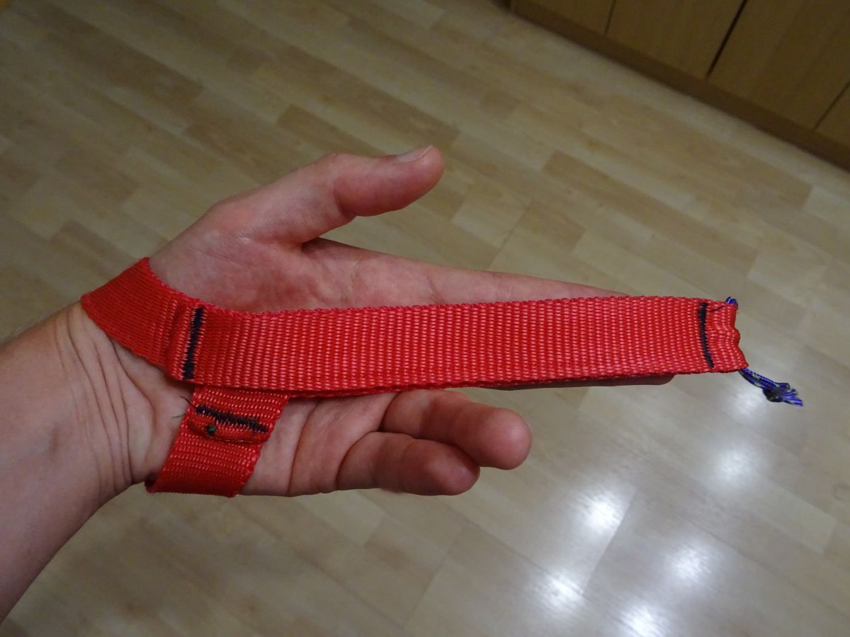 Da ich (noch) keinen Gurtbandschlauch zu Hause habe, musste für den Test einfaches Gurtband eines günstigen Spanngurtes herhalten.