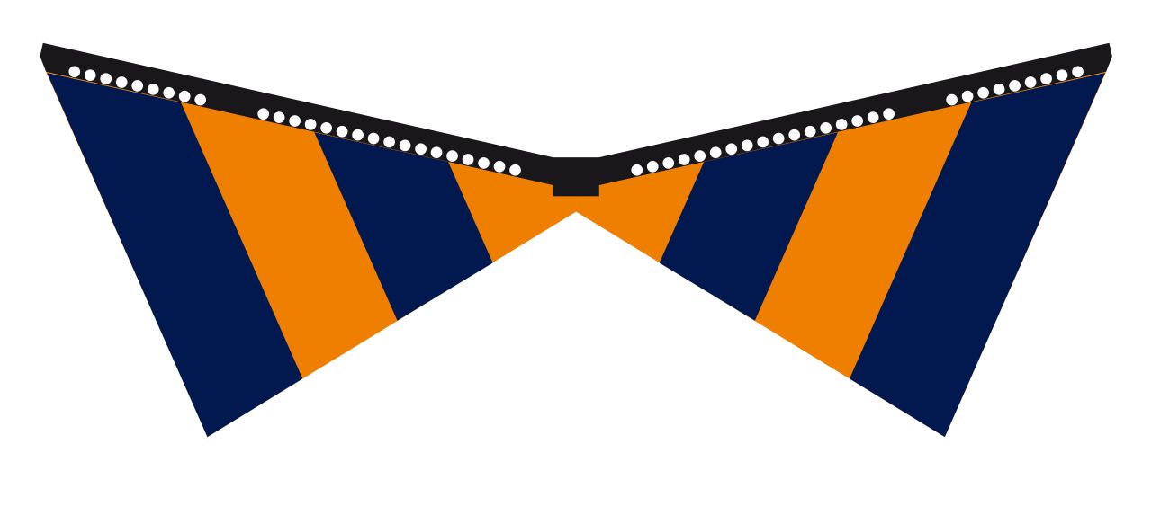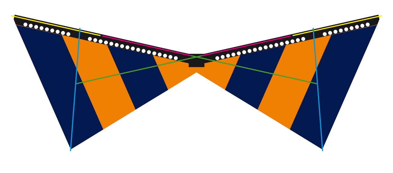 Die diagonalen Leitkanten-Stäbe kreuzen sich einfach in der schwarzen Dacron-Tasche ohne Verbinder.
