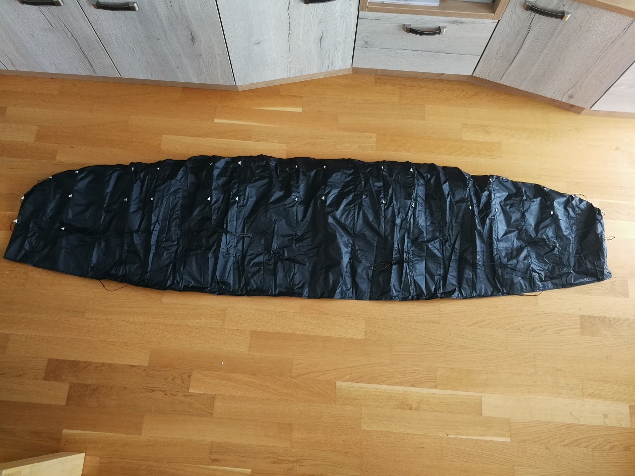 2. Komplett entstanden und einem nähcrack aus dem Forum als Warenbrief schicken plus ein Gutschein für a Bier beim nächsten TreffenDoch was übersehen: die durchgestossene LK.... Da einfach nen passendes Stück Dacron drüber nähen (auch wieder ca 5cm Überstand) und gut is... Net schön aber hält