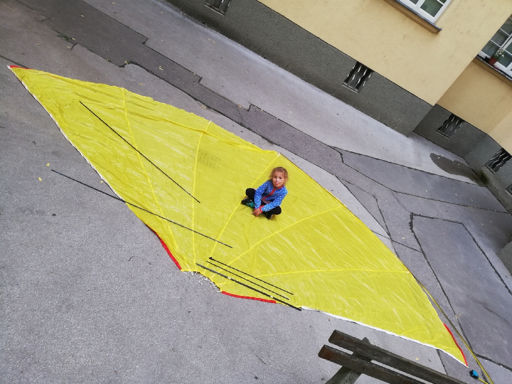 Die Frage richtet sich in Bezug auf die Flugeigenschaften nicht auf den Zug oder das Gewicht des Drachens. Generell verspreche ich mir daraus einen Drachen der sich mühelos um die X und Z Achse rotieren lässt und mit geeignetem Wind vielleicht sogar um die Y Achse.