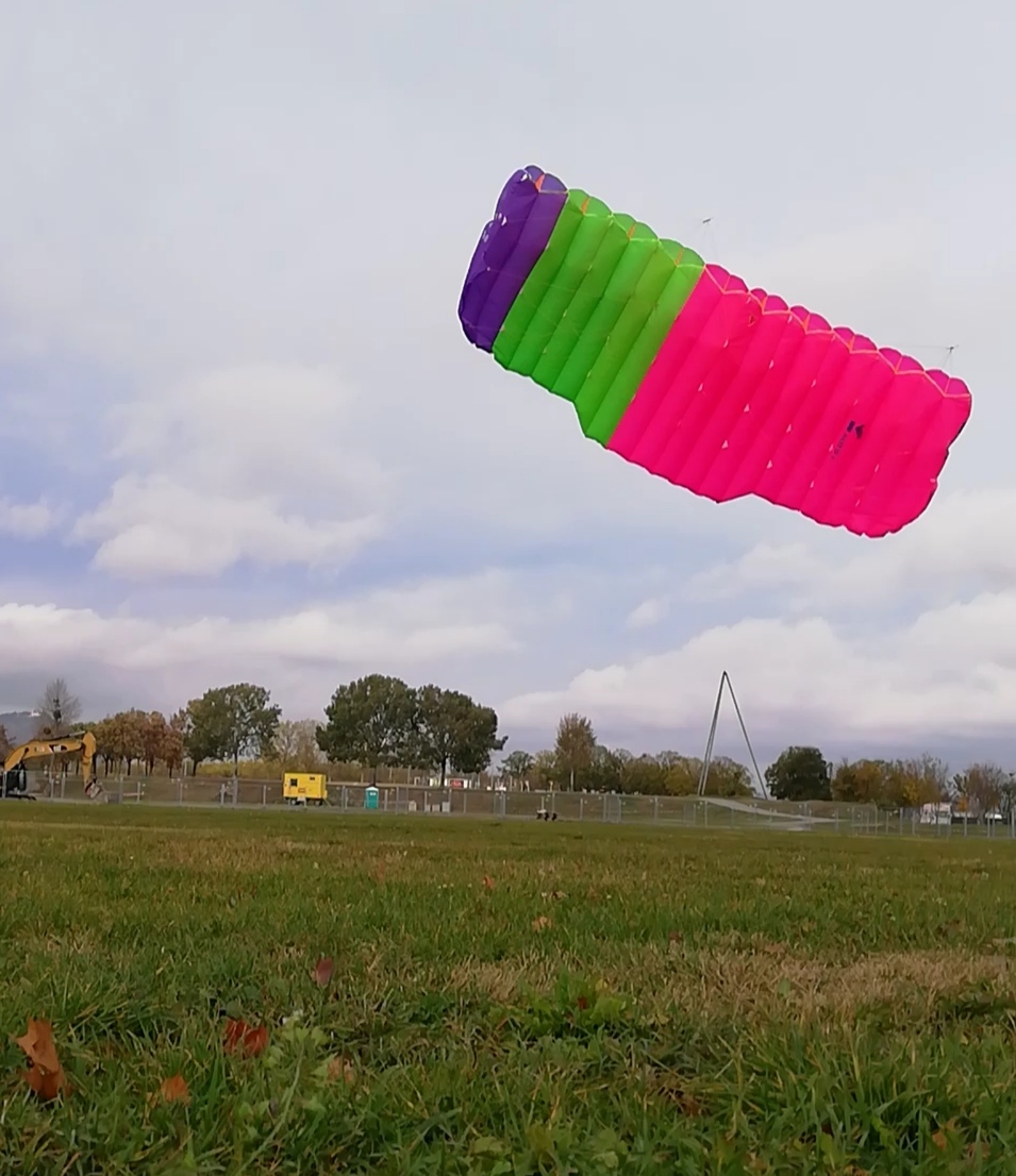 Ich bin gestern mein „pink Mascherl“ zum ersten mal geflogen und habe auf eine Waage verzichtet und die Leinen direkt an die Nocken geknüpft.