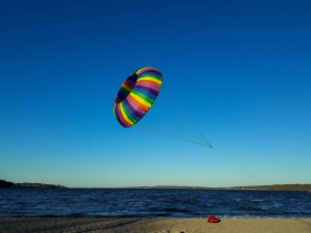 Jetzt ist er endlich fertig. Gestern wurde noch schnell ein dekorativer Fransenschwanz gebastelt und ab ging´s in die Luft. Trotz 4 - 5 Bft. machte er eine richtig gute Figur.Die Bowl ist ein aktuelles Gemeinschaftswerk mit meiner Tochter. Ich habe die Paneele zugeschnitten, während sie genäht hat. Das Knoten der Waageschnüre war dann wieder mein Job.