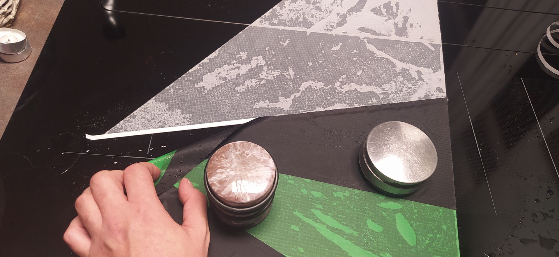 Anzeichen und ausschneiden hat auch wunderbar geklappt. Dank dem tollen Tutorial zur Segelmachernaht, geht auch das kleben gut von der Hand. Das nasse Kochfeld funktioniert dabei ziemlich gut