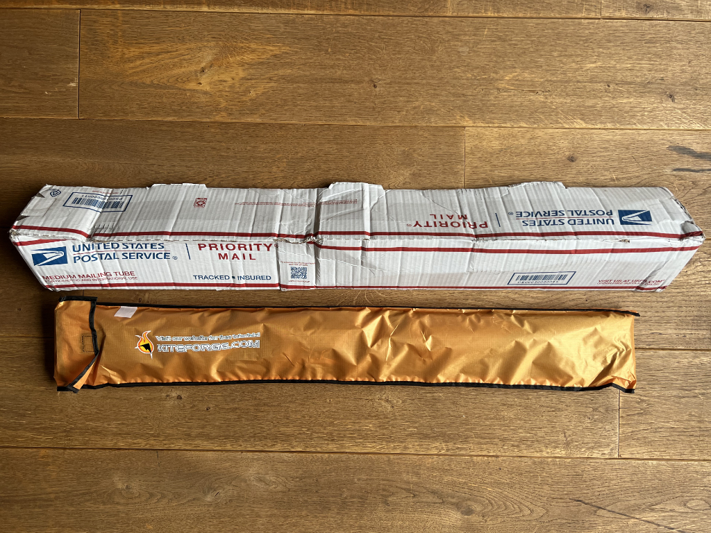 Zwei Sachen gefallen mir nicht: Das furchtbare CE Etikett am Heck (so ein depperter Schrott bei einem Kite) und etwas zu kurze Hülse zur Befestigung der LK an der Nase.