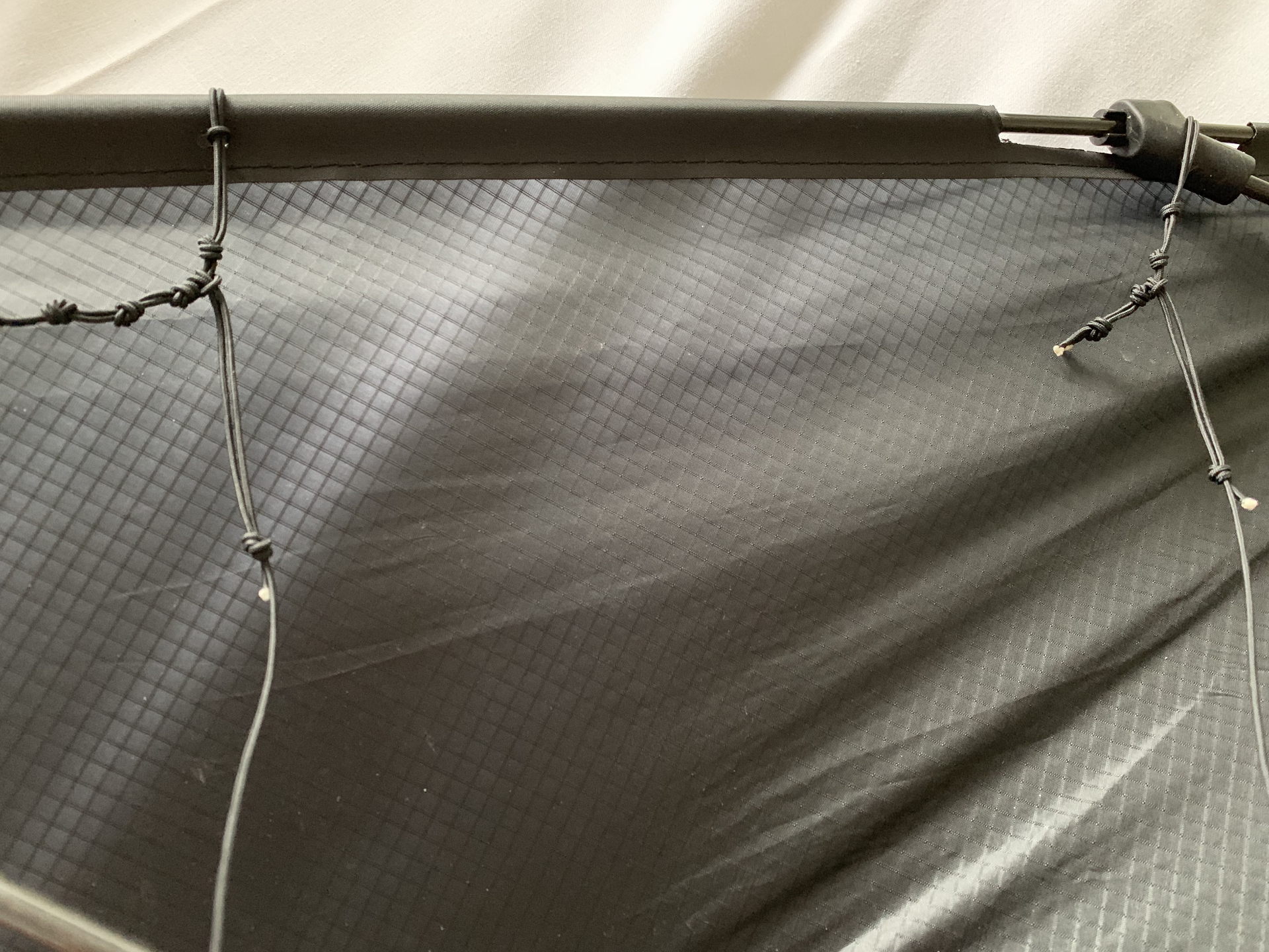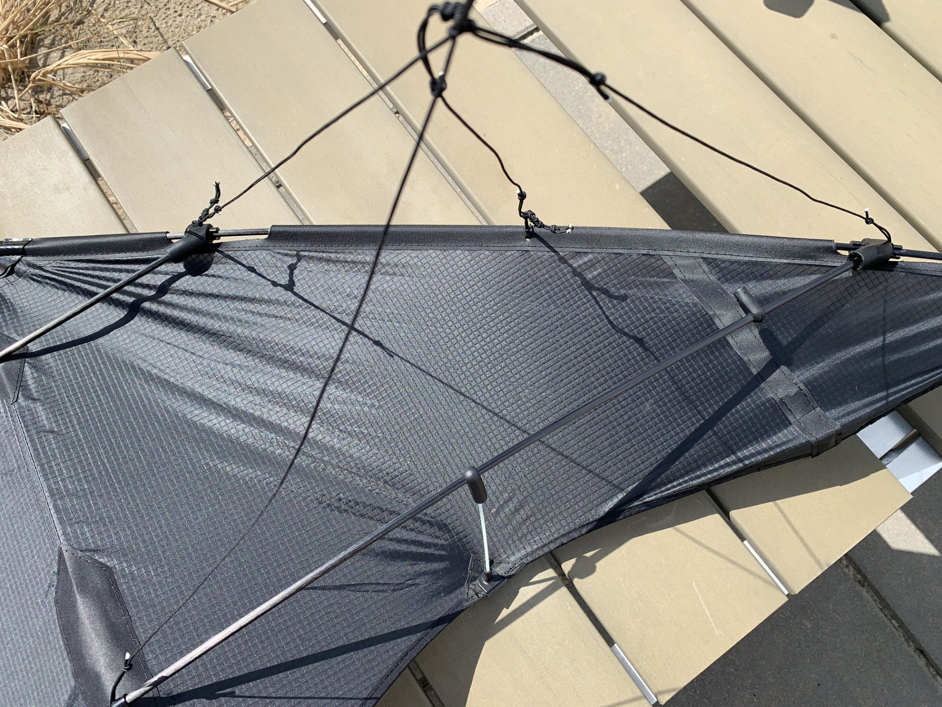 Ich habe bei meiner Wilden Hilde die äußeren Standoffs verloren und diese unterwegs provisorisch ersetzt. Dabei habe bei einem GFK Stab zu wenig Sekundenkleber benutzt, so dass dieser in der Tasche im Segel stecken geblieben ist. Unterwegs habe ich mir damit geholfen, dass ich den Stab immer wieder in die Endkappe in der Tasche gefummelt habe.