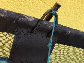 Bei der mittleren Waagenbefestigung war ich etwas verwirrt - hab das mal so interpretiert, dass sie zusätzliche 13cm Schlaufe an die Leitkante kommt und da dran die mittlere Schlaufe der horizontalen Waagenleine. Zusätzliche Knoten in der Schlaufe verleihen dem ganzen gleich eine viel sportlichere, tuningbarere Optik