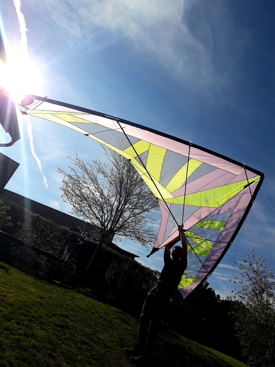 Ich habe jetzt die Waage auf allen Leinen mit Knotenleitern auf 2,30m stehen. Die Standoffs hatte ich wohl zu lange gemacht, da ich dachte, dass die Vorspannung des Segel mit 50 und 70cm nicht ausreichend genug wäre. Dadurch lag schon an der Aluhülse im Kreuz zu viel Spannung durch die Querstreben an. Jetzt hoffe ich, das es mit der Änderung funktioniert und wir uns bald in der Sandkiste treffen können und dürfen.