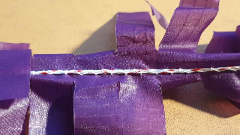 Dann lässt sich das gut in eine Splitkappe einfädeln und das Stabende kann nicht auf dem Saumbandstreifen zur Seite rutschen.