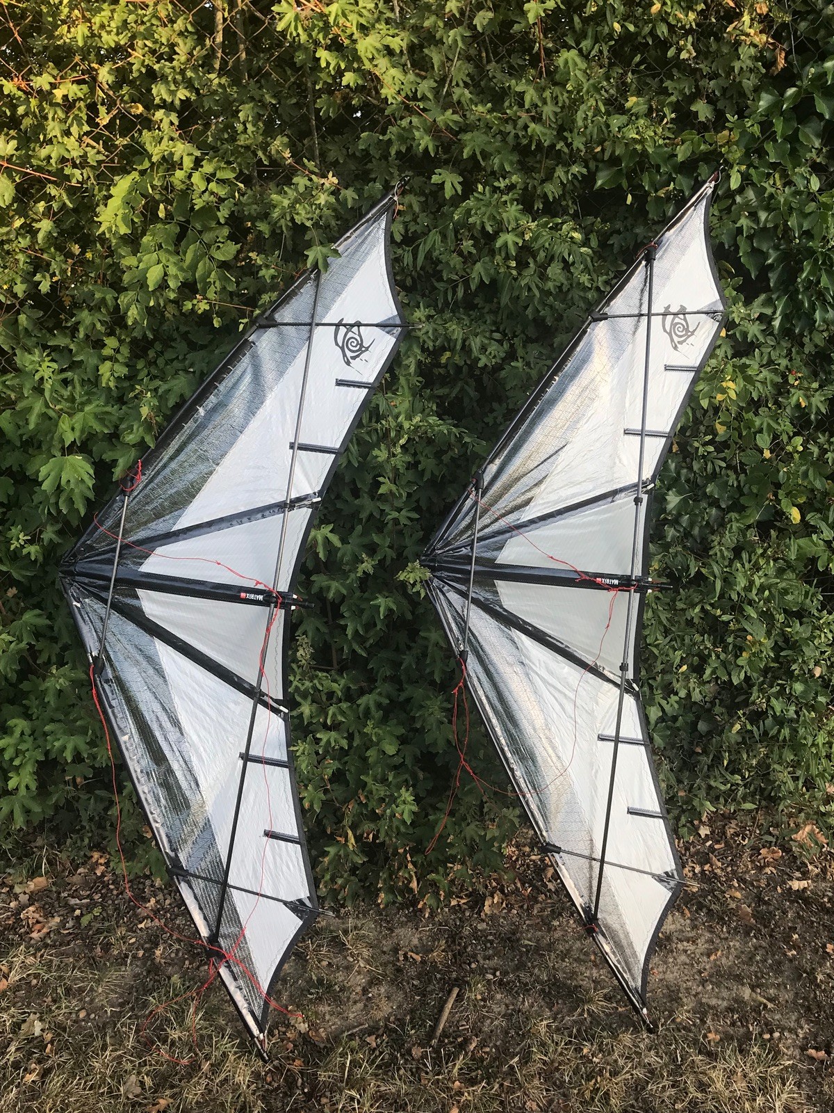 Bei der Balor Race rechts ist die Leitkante zur Nase hin geteilt und man sieht nichts, alles ist durch das Dacron verdeckt. Bei der Balor Race links ist die Leitkante zur Flügelspitze hin geteilt, in der Nähe des Verbinders der UQS.