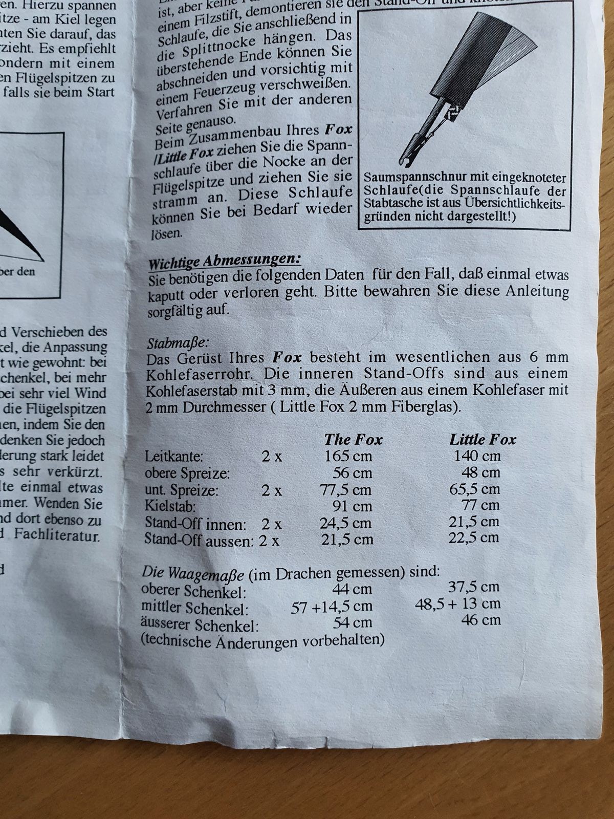 Spreizen oben und unten sind zur Unterstützung eines einfacheren Startverhaltens um wenige mm gekürzt; und das hat sich für mich als goldrichtig erwiesen!