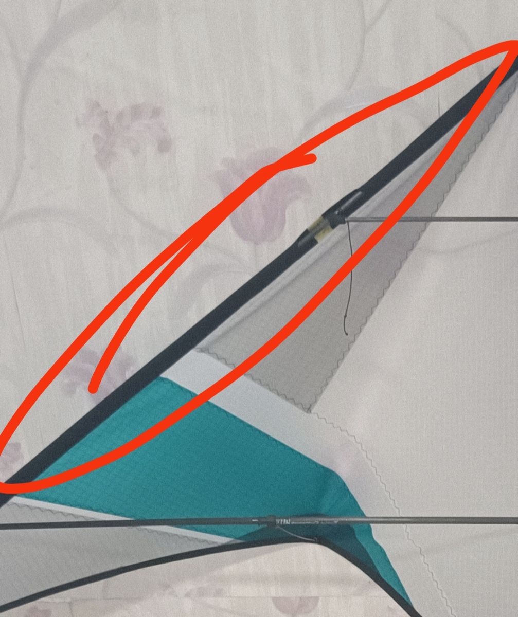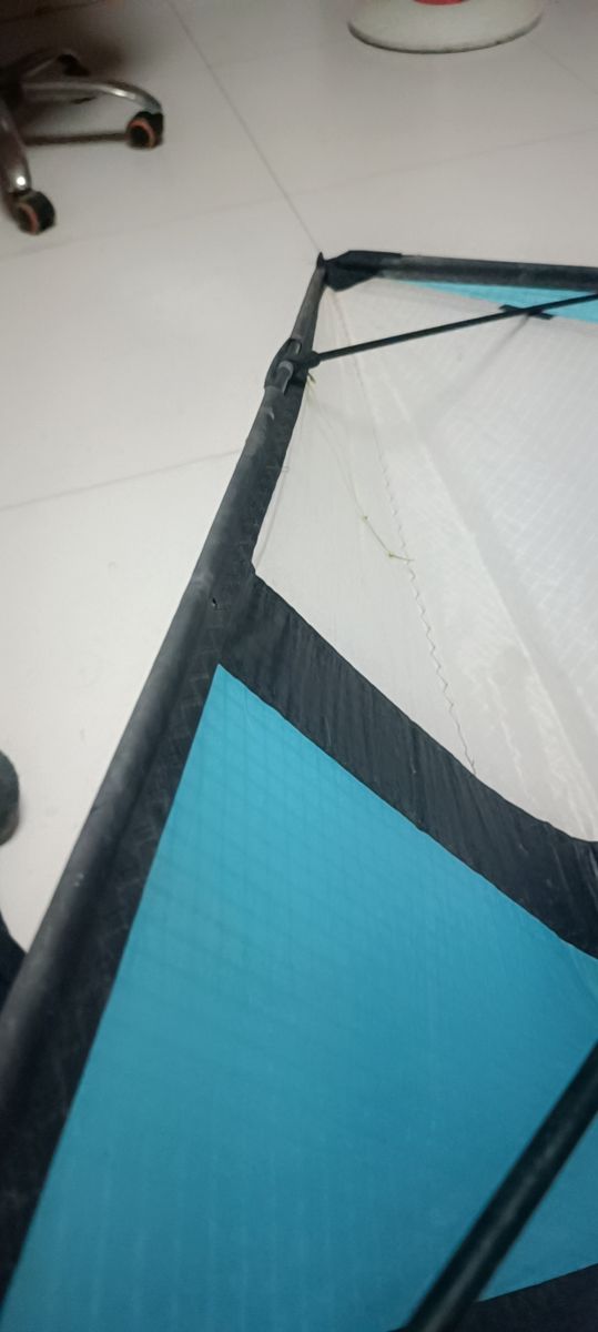 One day I decided to get rid of the wrinkle at the root, so I took the kite apart and cut off the excess with a knife.