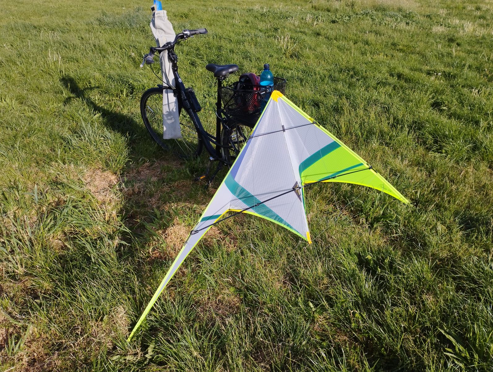 Heute Nachmittag habe ich den ersten Flug mit meinem ersten selbstgebauten Drachen absolviert.