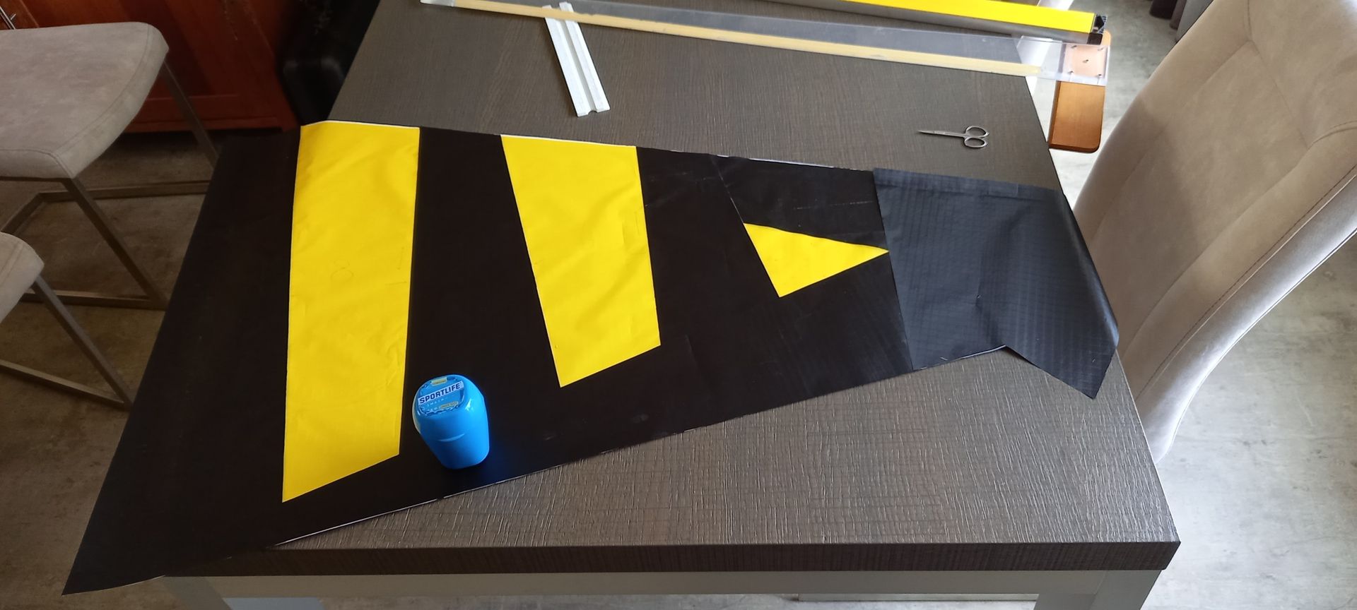 Mein Plan war wie folgt: Ich habe diesen Abschnitt nun abgeklebt und wollte mit dem Nähen aller vertikalen Nähte beginnen.