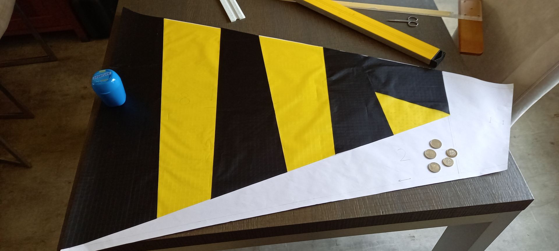 Also kann ich dafür einfach Spinnaker verwenden? Eigentlich ist es eine ziemlich gute Idee, aus den Resten eine Tüte zu machen. Obwohl ich eine Reihe von Drachen in den gleichen Farben herstellen möchte, habe ich eigentlich keine Reste. Ich muss noch etwas darüber nachdenken.