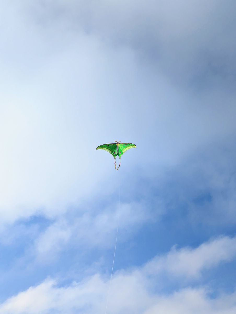 Vor einiger Zeit habe ich einen gebrauchten „Luna Moth Kite“ von Carsten Domann erworben, der aktuell zusammen mit seinem roten „Canard Kite“ und dem „Swabian Roller Kite“ von Peter Hespeler zu meinen liebsten Drachen zählt. Ich habe ihn (wegen des kleinen Windbereichs und des im Vergleich etwas beschwerlichen Aufbaus) noch nicht so oft geflogen und deshalb ist mir jetzt erst aufgefallen, dass ein Stück vom Kiel fehlt – geflogen ist er trotzdem wunderbar.