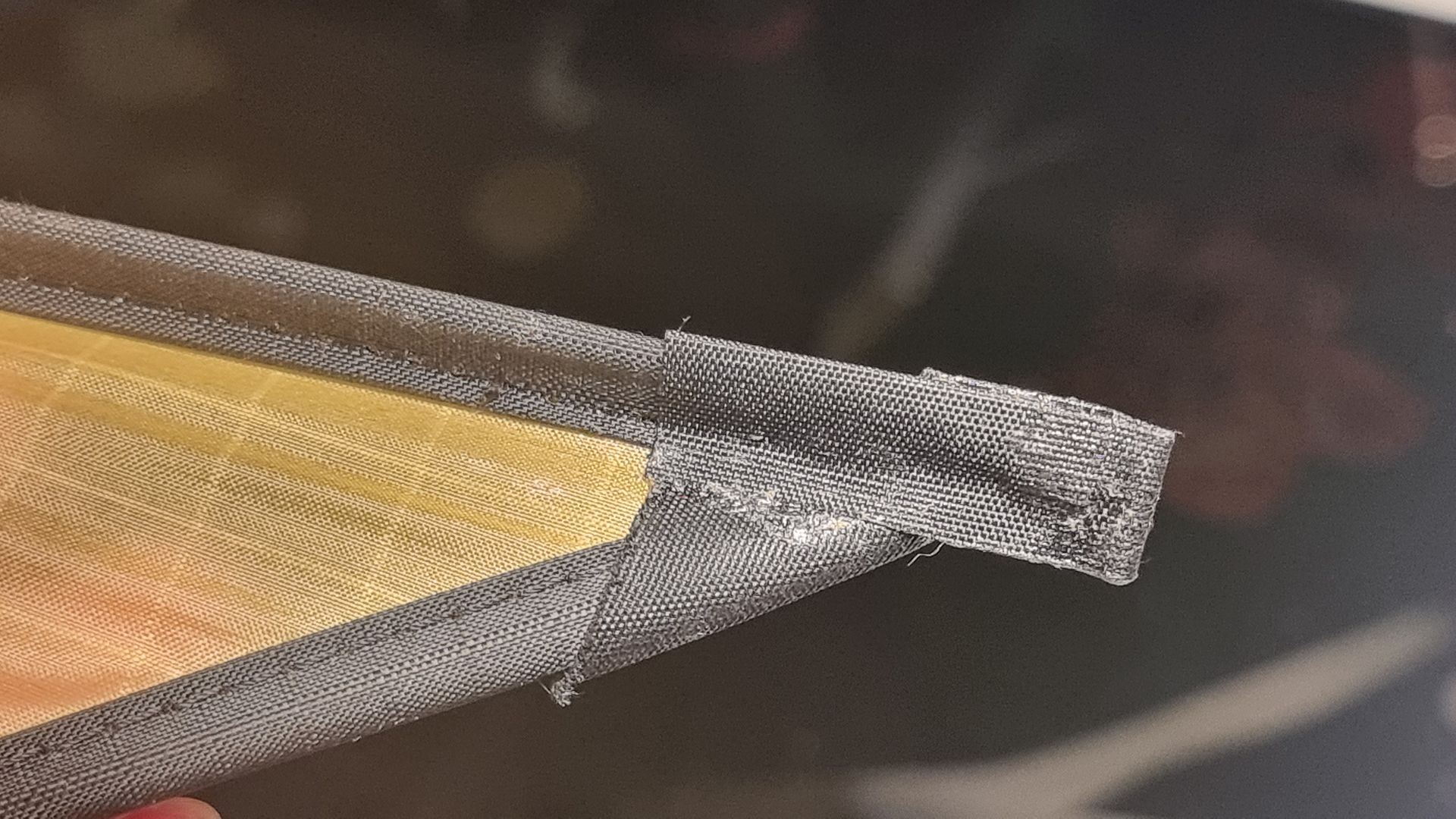 Der Kielstab ist fest eingenäht und steht stark unter Spannung. Deswegen habe ich keine Ahnung, wie ich den mit neuer Nase und Stabtasche unter Spannung wieder eingenäht bekomme :/