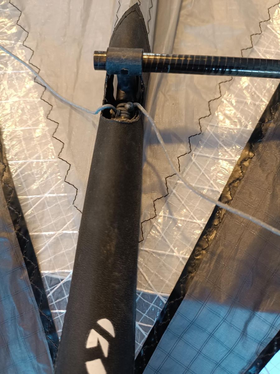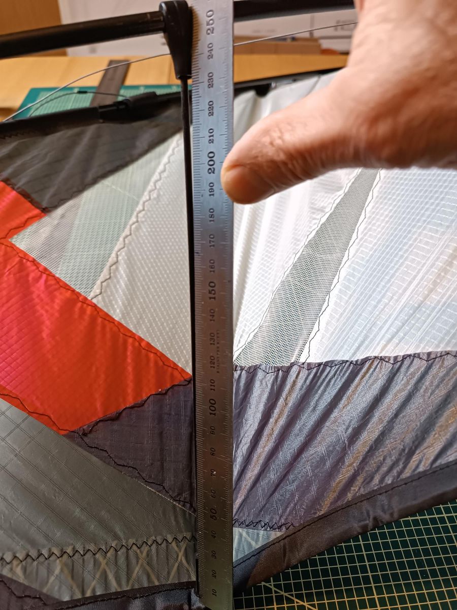 Eigentlich müsste man wissen, von wo aus die UQS des 90Three auf Höhe des Kreuzverbinders gemessen werden – vom Rand des Kreuzverbinders oder von dessen Mitte. Denn es gibt verschiedene Arten von R-Sky-Kreuzverbindern. Bei einigen, wie auf den Fotos eines alten R-Sky-Drachens zu sehen ist, können die 3PT in den Verbinder hineinragen. Bei anderen (den 6-mm-Versionen) ist das nicht der Fall.