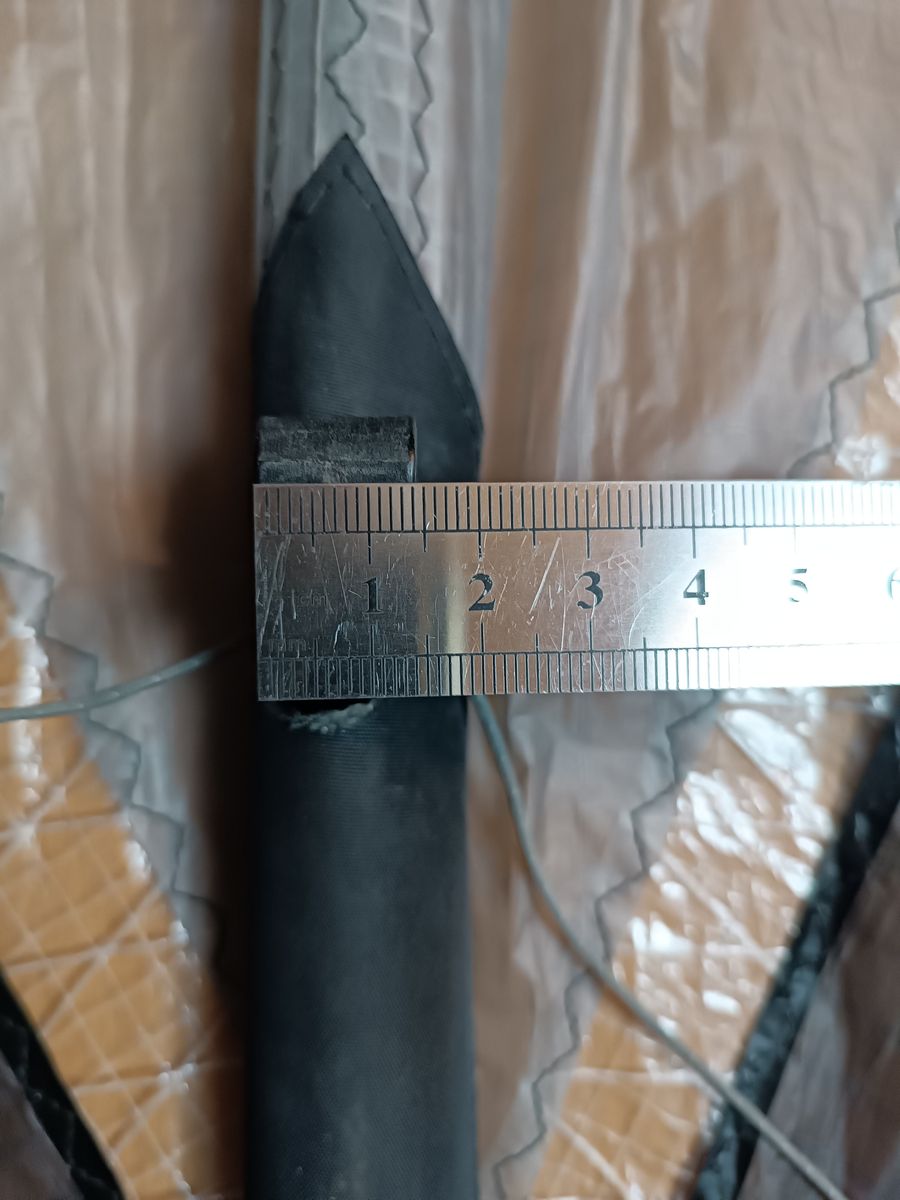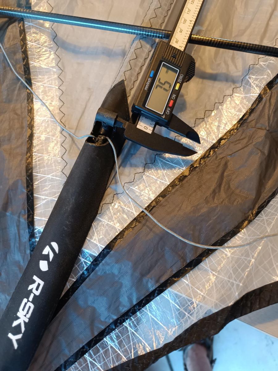 Eigentlich müsste man wissen, von wo aus die UQS des 90Three auf Höhe des Kreuzverbinders gemessen werden – vom Rand des Kreuzverbinders oder von dessen Mitte. Denn es gibt verschiedene Arten von R-Sky-Kreuzverbindern. Bei einigen, wie auf den Fotos eines alten R-Sky-Drachens zu sehen ist, können die 3PT in den Verbinder hineinragen. Bei anderen (den 6-mm-Versionen) ist das nicht der Fall.Wenn man den von Metropolis angebotenen Kreuzverbinder als Referenz nimmt (derzeit nicht verfügbar), der das Design der R-Sky-Kreuzverbinder nachbildet, dann können die 3PT nicht hineinragen. Die Breite der R-Sky-Kreuzverbinder, gemessen an zwei verschiedenen R-Sky-Drachen, beträgt 14 mm.