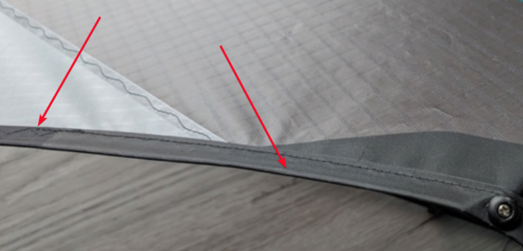 Ich kann den Beitrag nicht finden, aber ich habe im Forum gelesen, dass empfohlen wird, das Dacron der Leitkante bei den Ausschnitten für die Stabverbinder zu verdoppeln. Auf den Fotos des Break oder des Escape habe ich diesen Verstärkungstyp nicht gesehen, aber es ist auch nicht leicht zu erkennen.